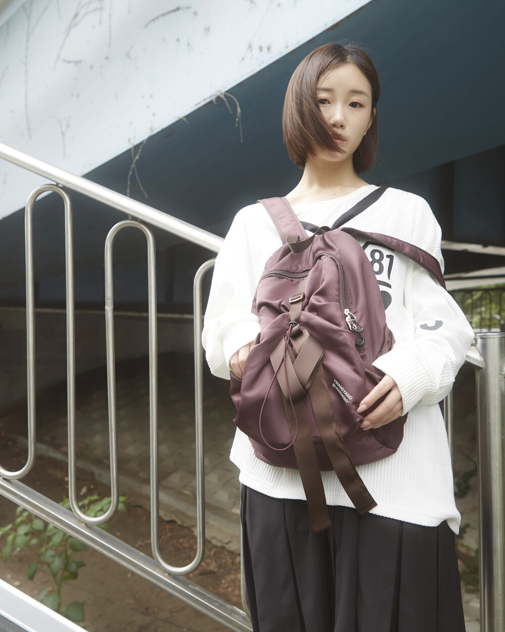 전면 리본 디테일과 스포티한 감성이 조화롭게 디자인된 보우 백팩입니다.