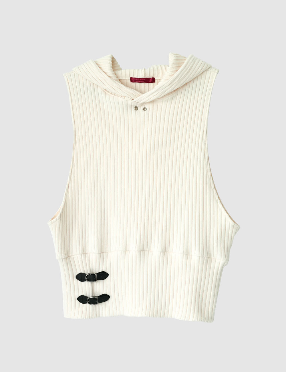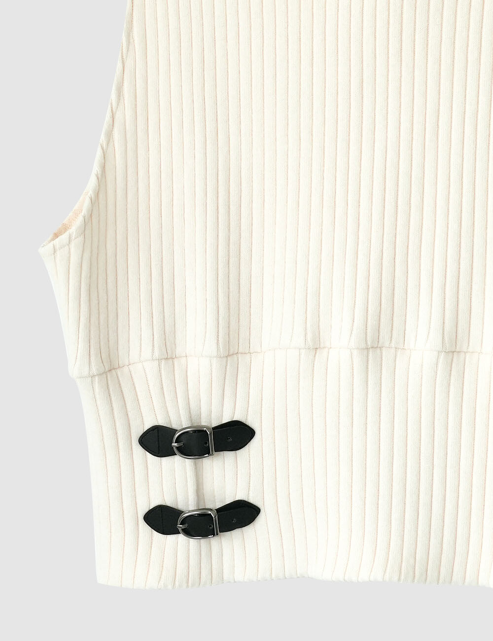 허리의 버클과 넥 밑의 아일렛이 독특한 포인트인 베스트입니다.