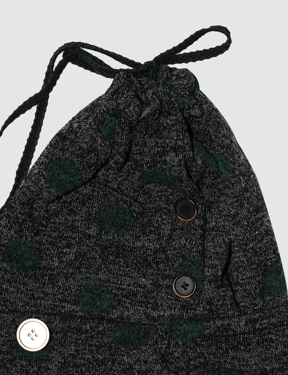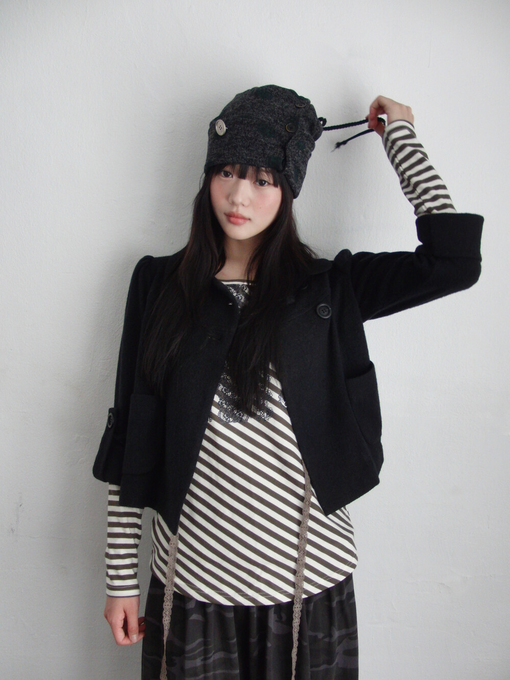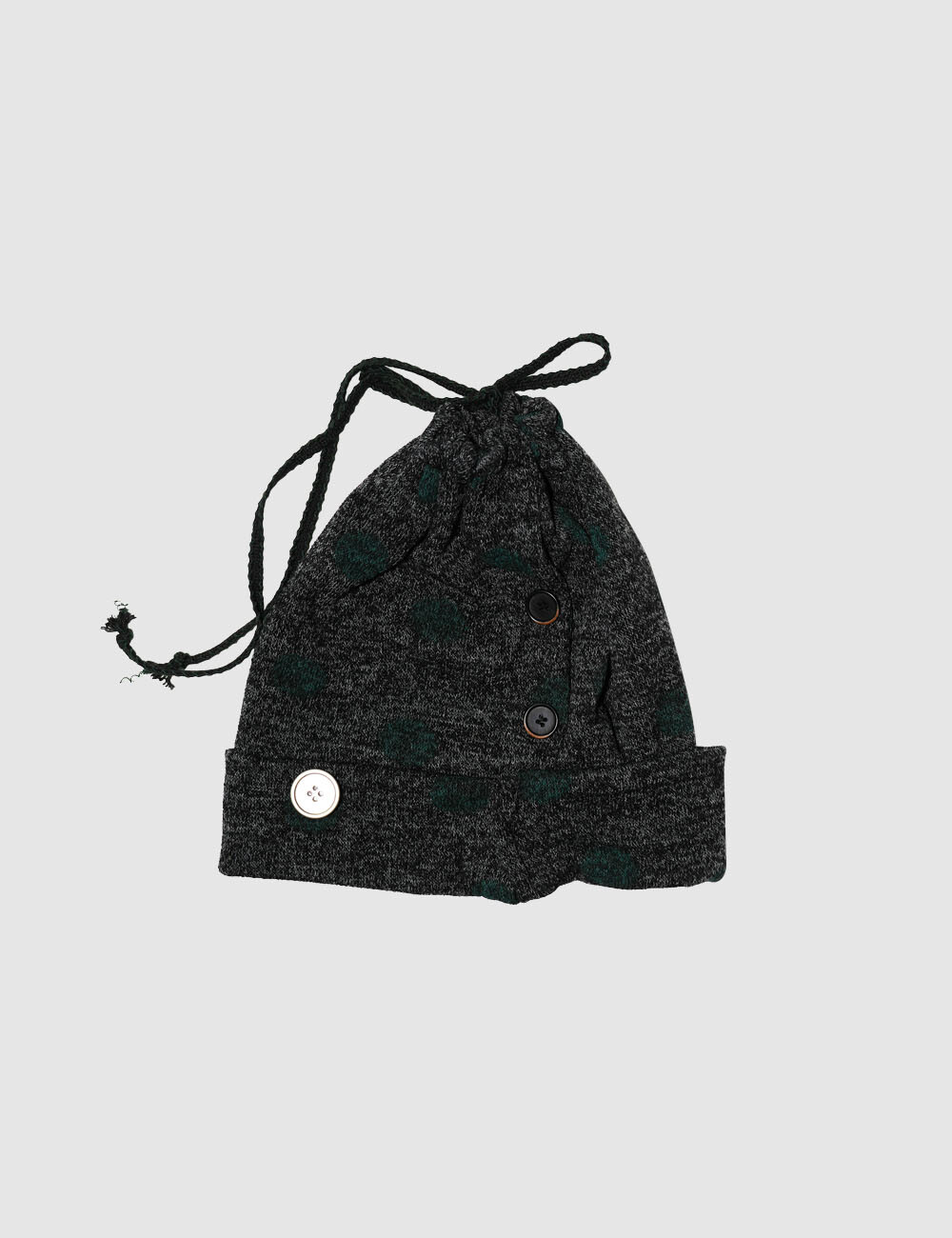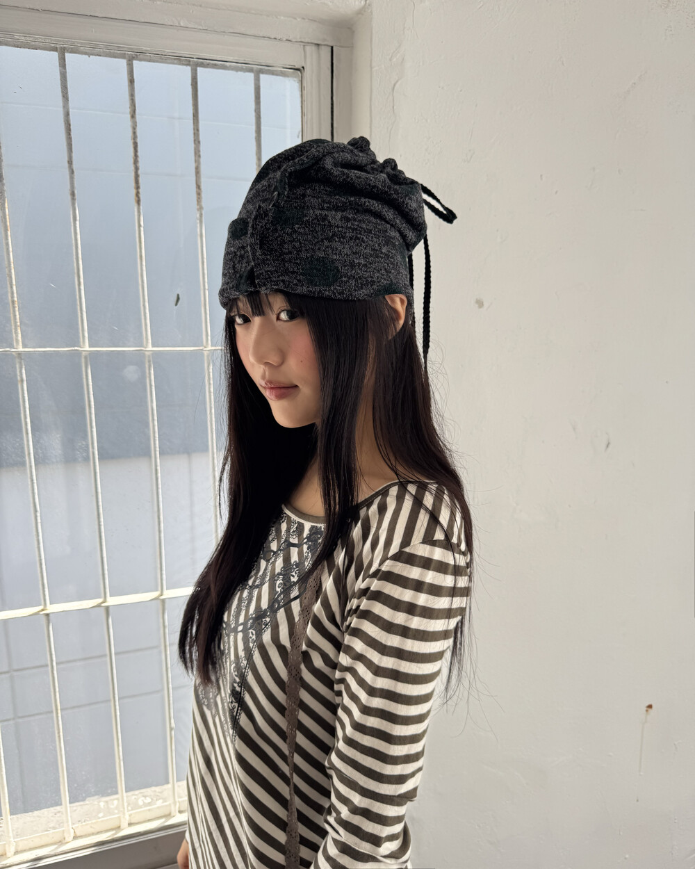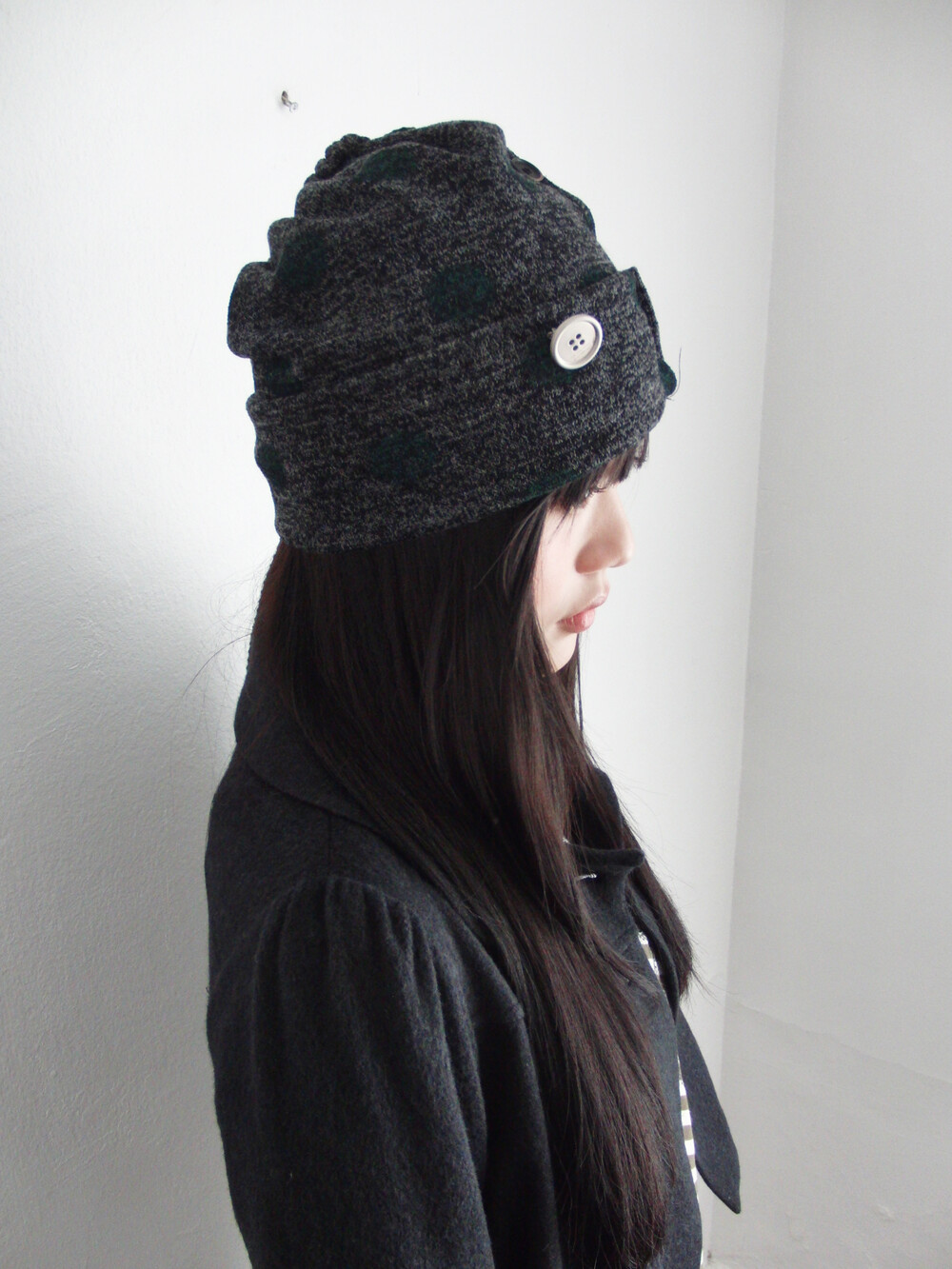 버튼업 형태의 비니입니다. 윗부분은 끈을 묶어 연출하실 수 있습니다. 단추 브로치가 함께 포함되며, 원하는 위치에 달아 자유롭게 연출하여 보세요.