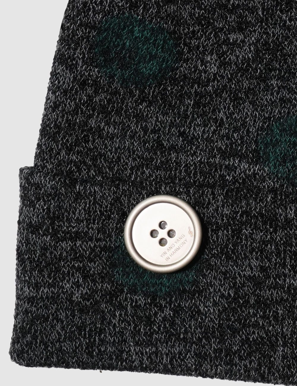 버튼 비니에는 단추 브로치가 함께 증정됩니다. 금속 단추 특성상 도금으로 인해 변색/긁힘 자국이 있을 수 있으나 이는 교환 및 불량의 대상이 아님을 안내드립니다.