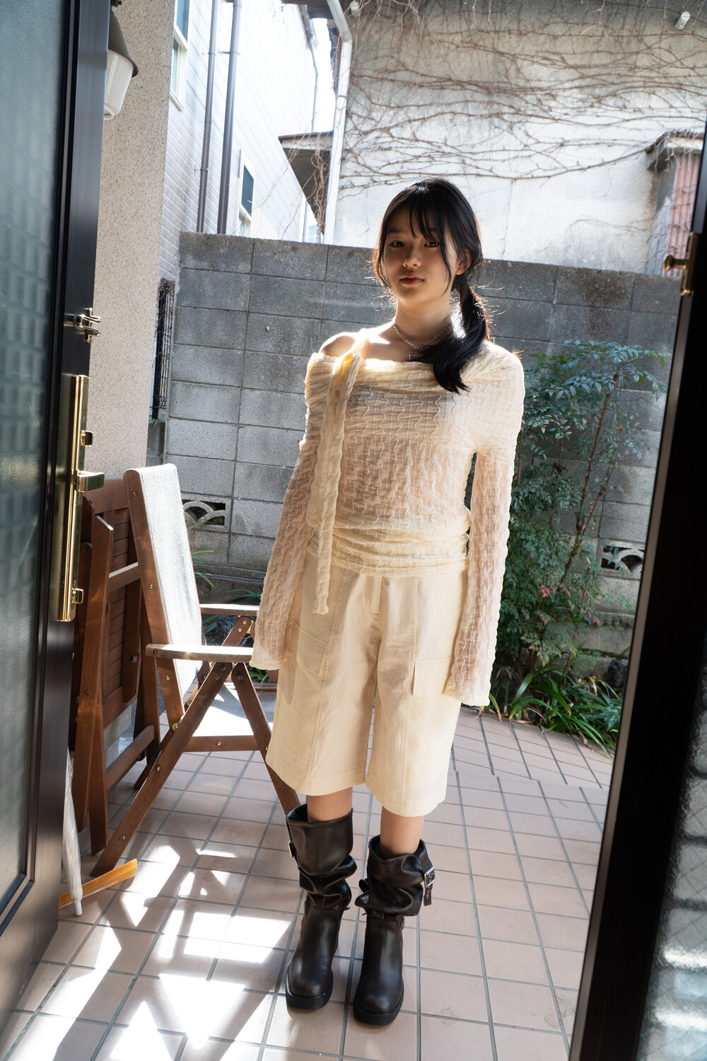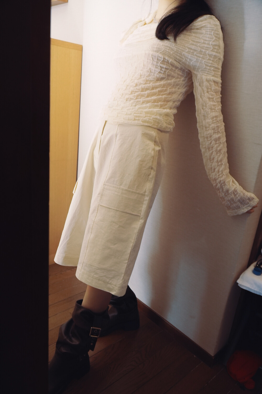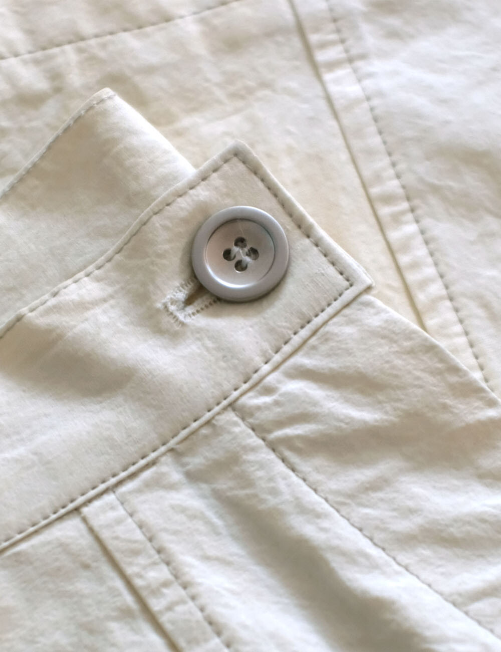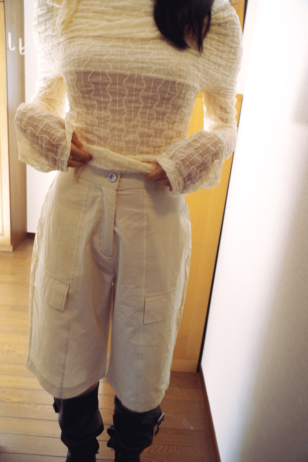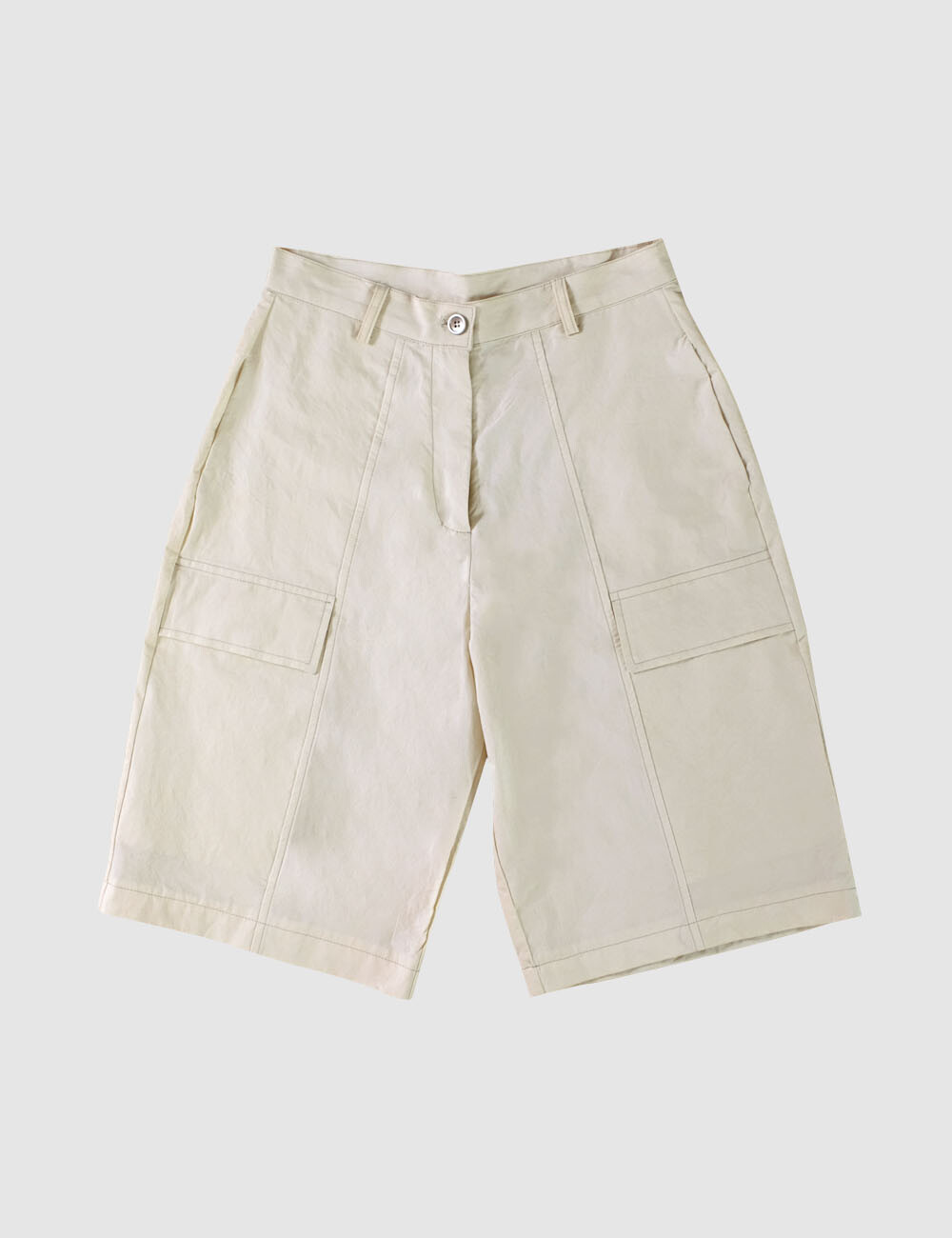 바지 앞 부분의 히든 포켓 위로 카고 디테일이 더해진 군더더기 없는 실루엣의 쇼츠입니다.