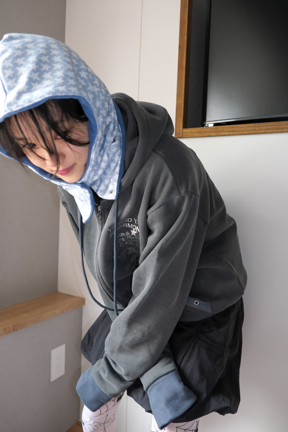전면의 스냅버튼과 스트링으로 클로징과 조절이 가능합니다.