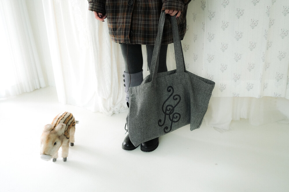 큰 사이즈감과 적당한 길이감의 어깨끈으로 제작된 에코백입니다. 전면에는 음표를 형상화한 그래픽이 전사 나염 처리되어있습니다. 캐주얼하게 인앤양인하모니의 무드를 즐길 수 있는 아이템입니다.