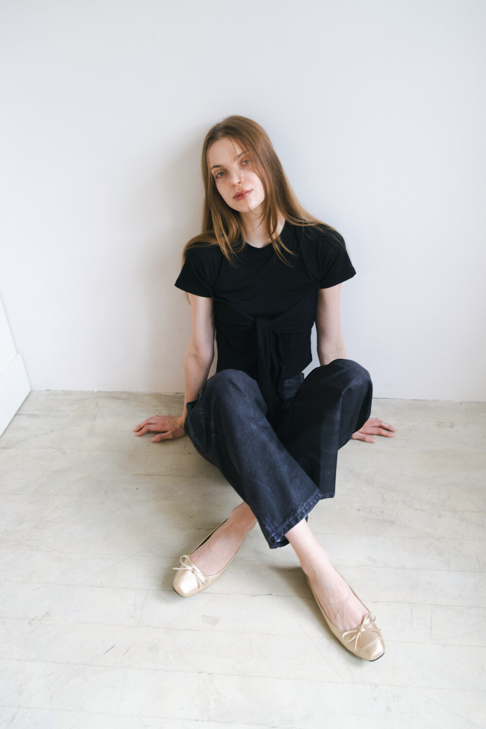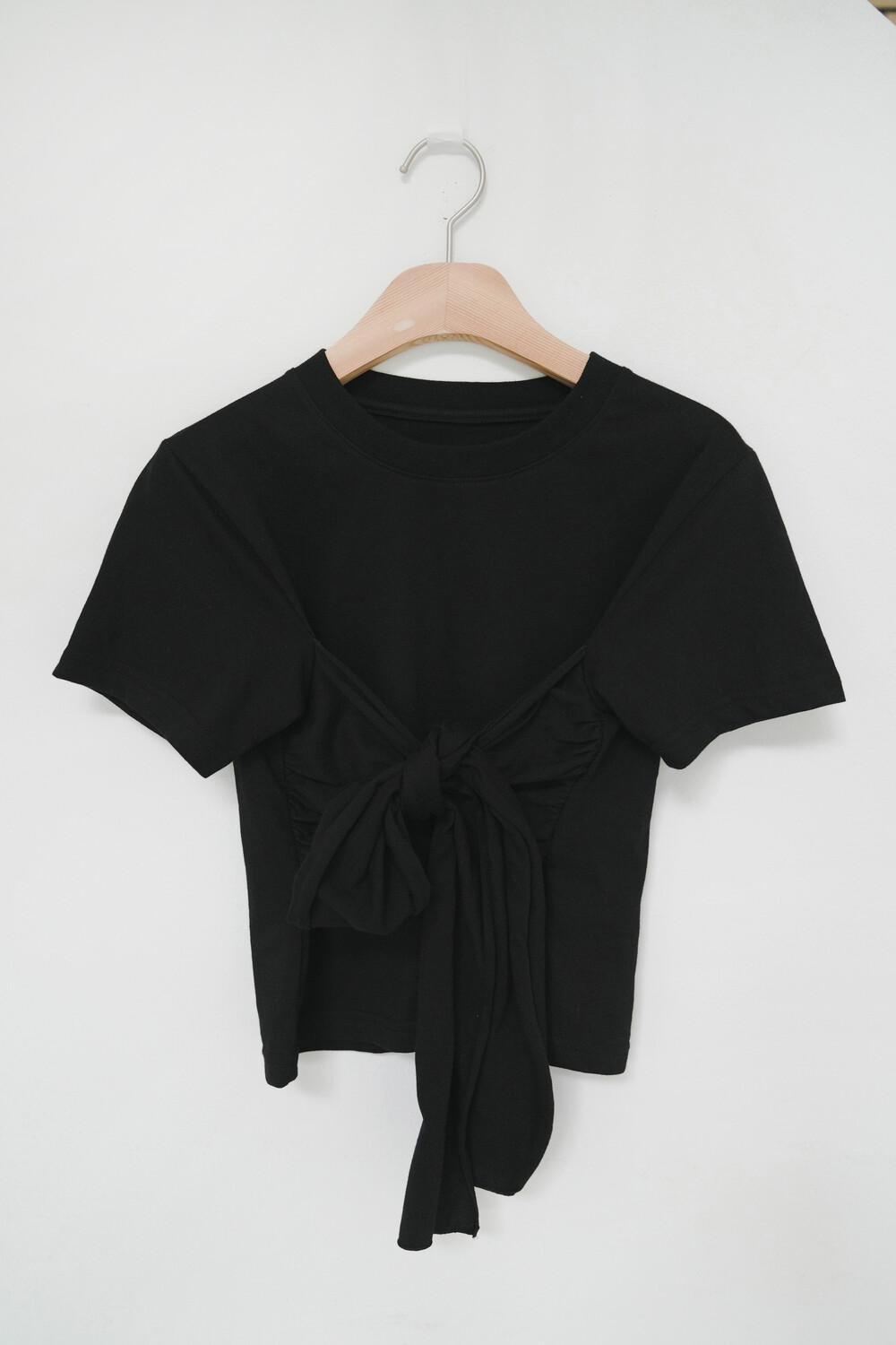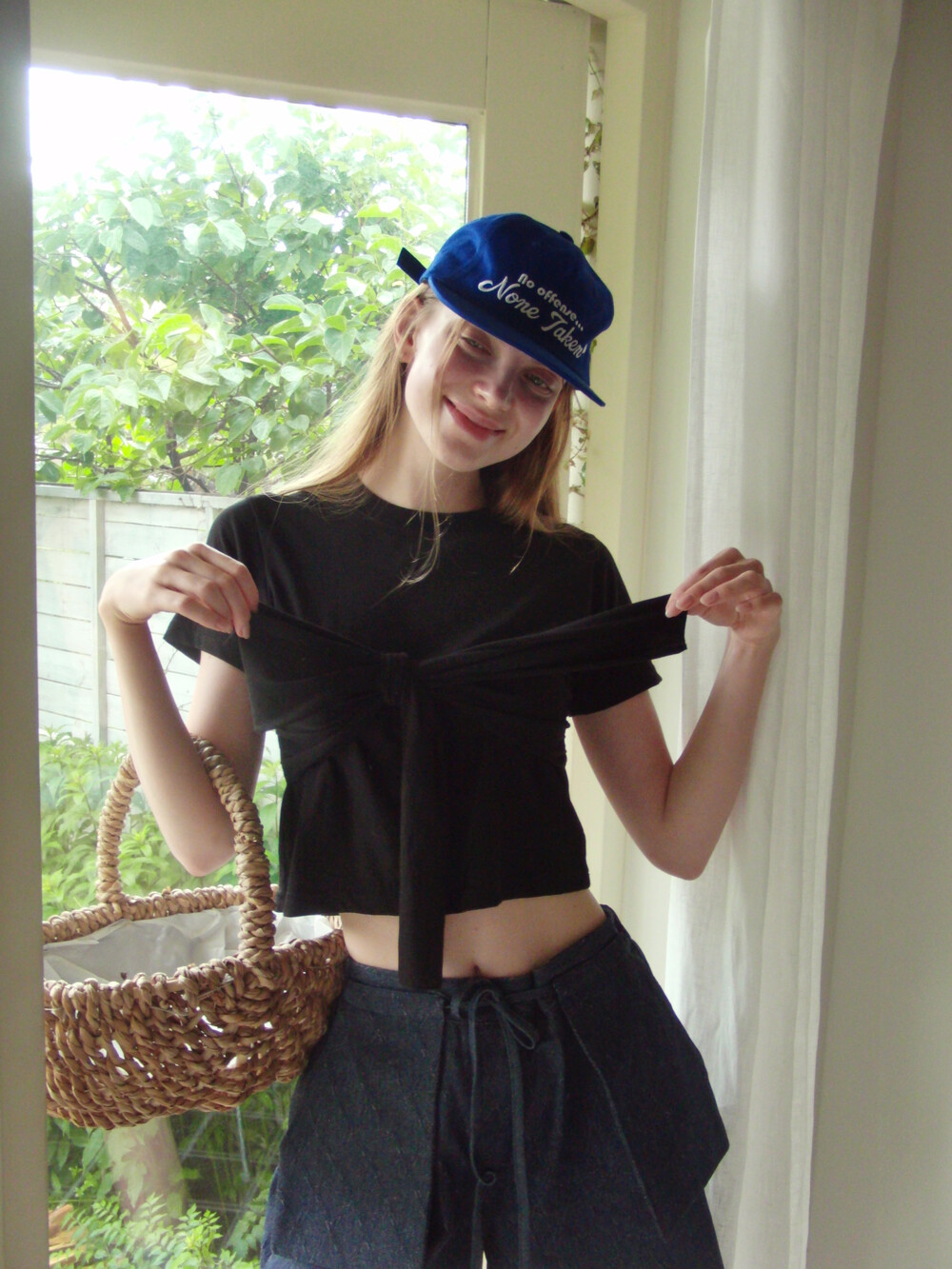 가슴 전면의 보우 디테일을 자유롭게 연출할 수 있는 탑입니다. 적당한 소매길이와