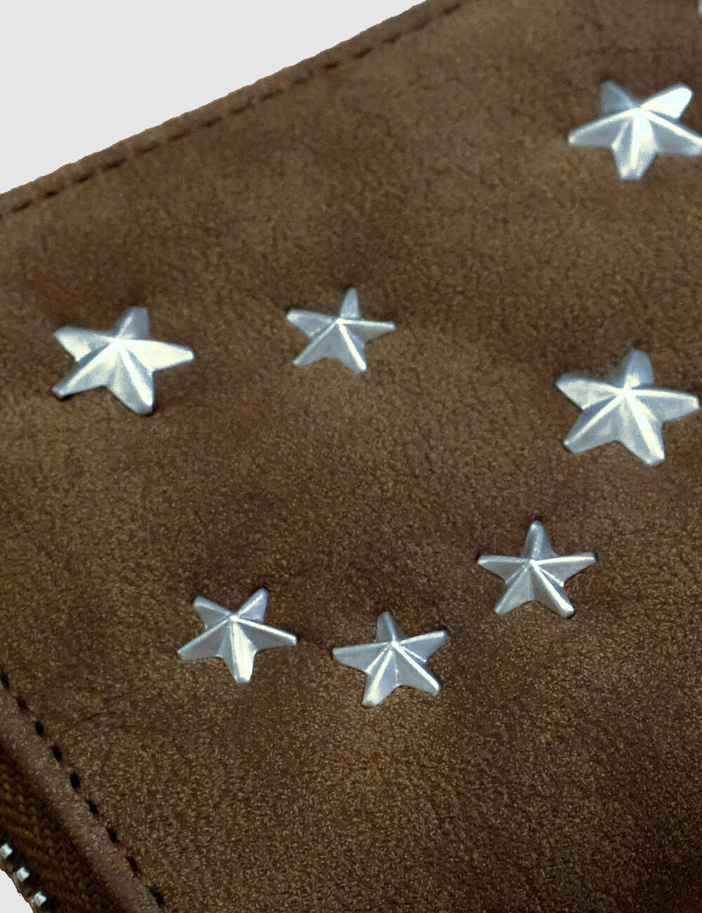 별 스터드에 공정상의 이유로 작은 기스들이 있을 수 있으며, 가죽 표면에는 워싱과 결이 표현되어 있습니다.
