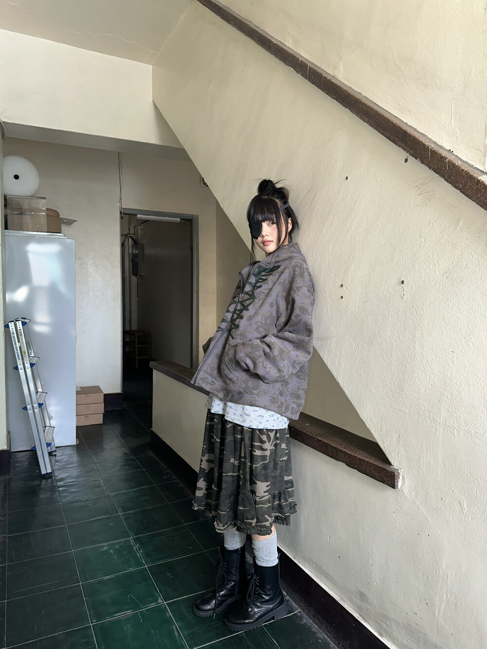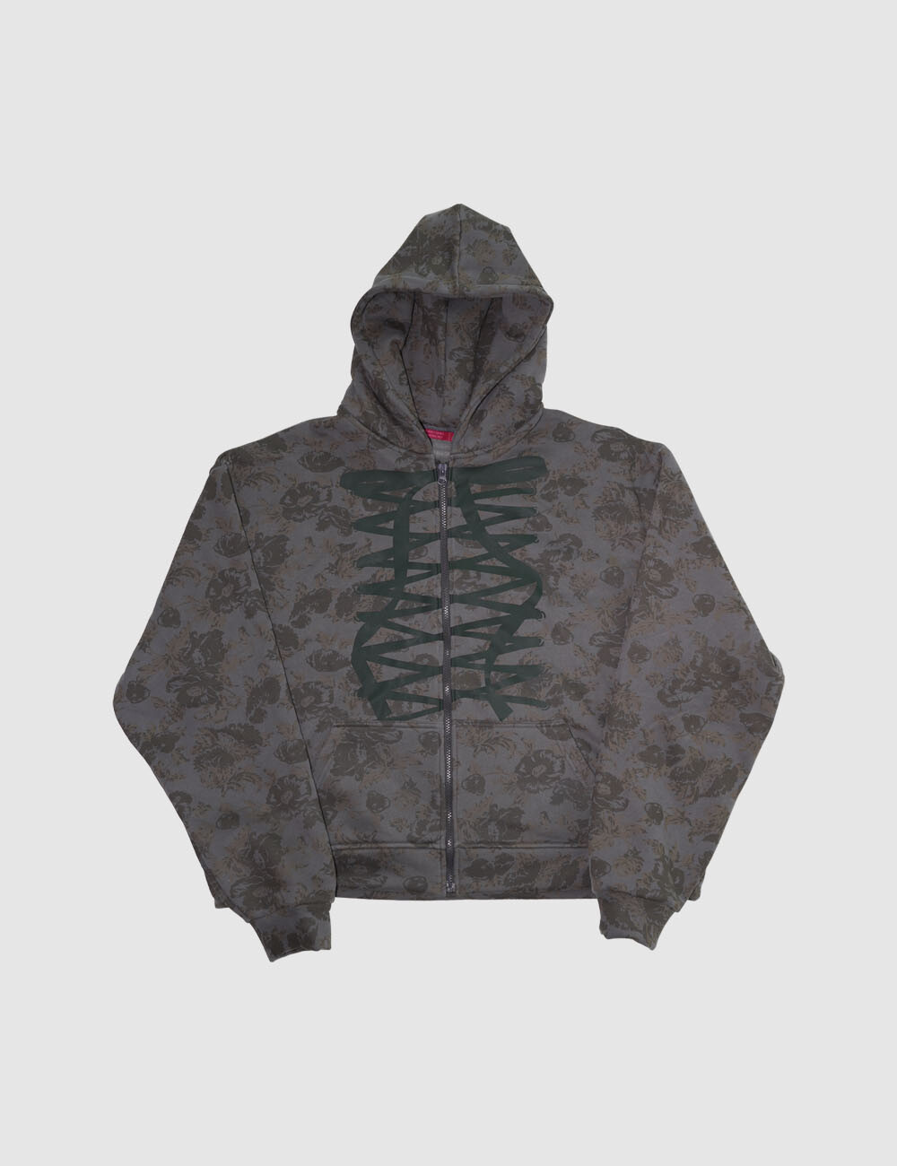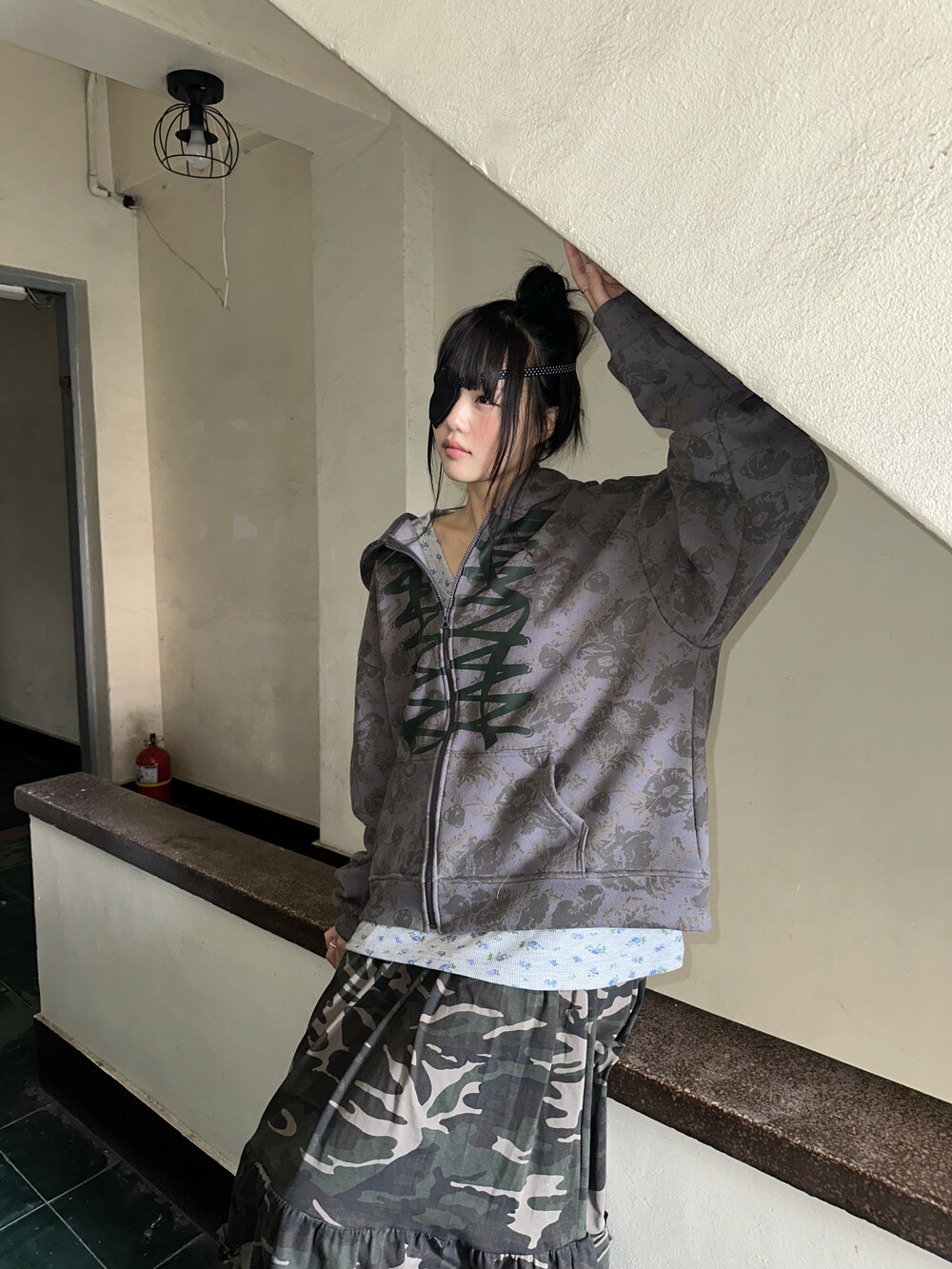 리본 모티브가 전면에 인쇄된 후드 집업 자켓입니다. 잔잔한 무늬의 로즈 컬러는 기모 가공이 되어있어 포근한 착용이 가능합니다.