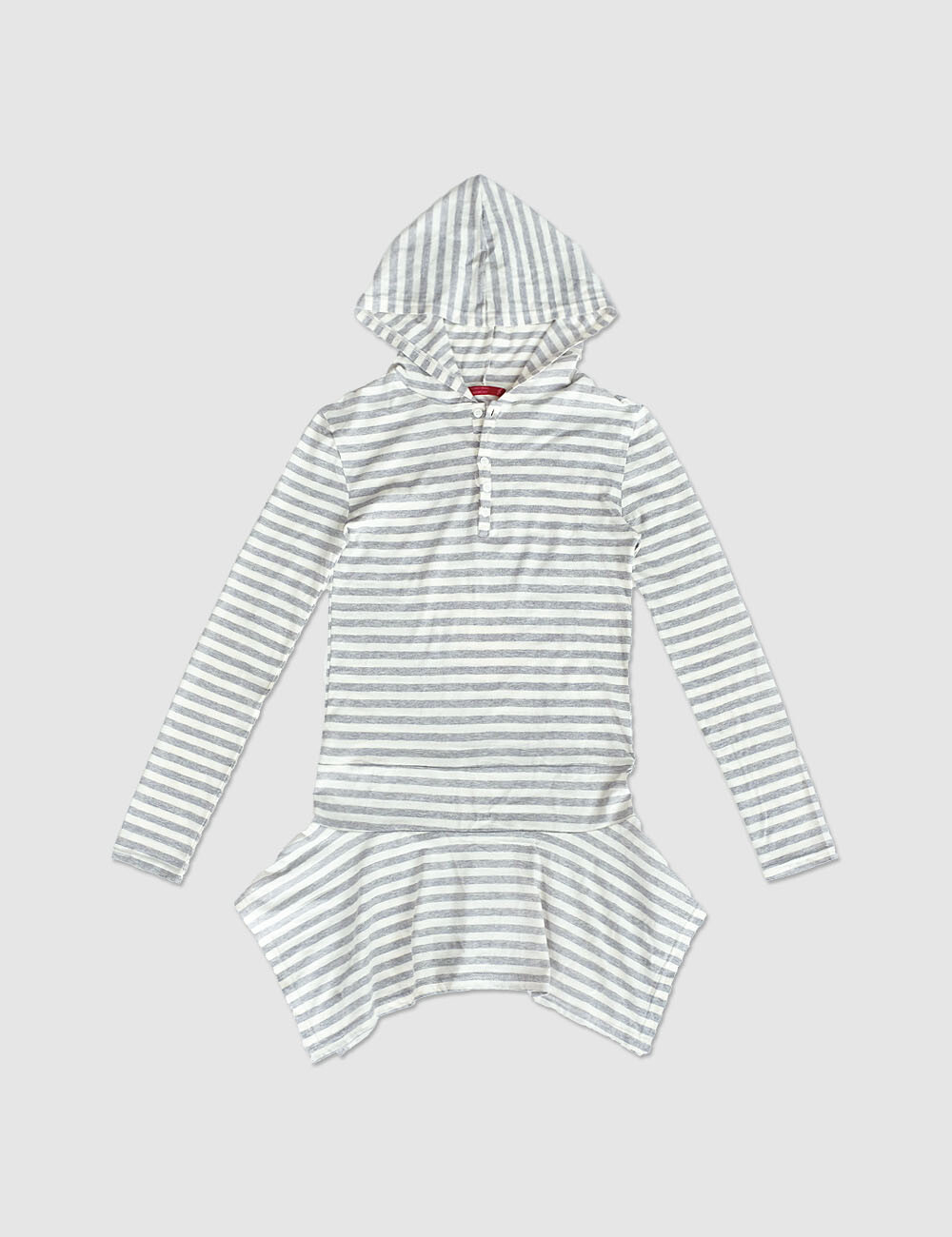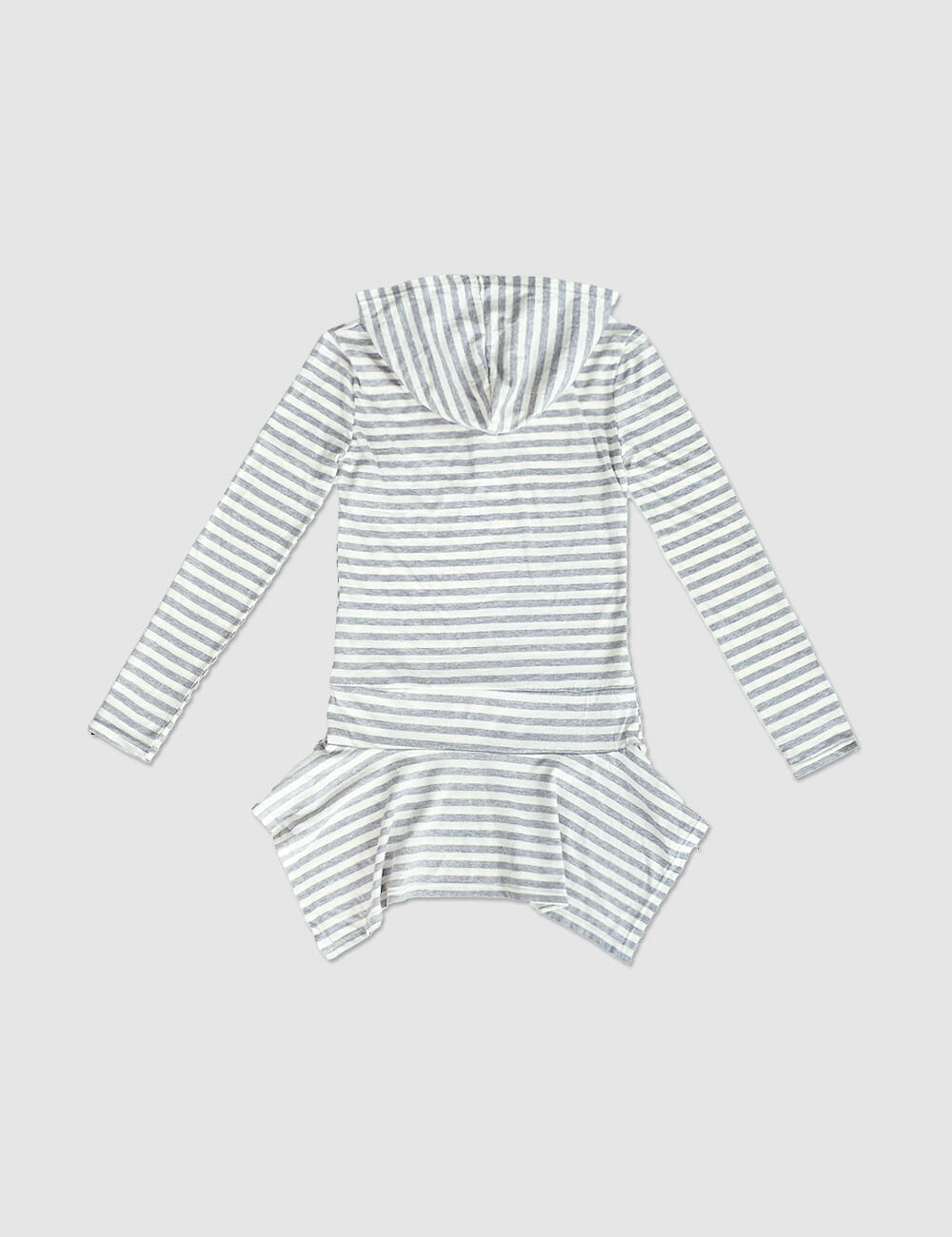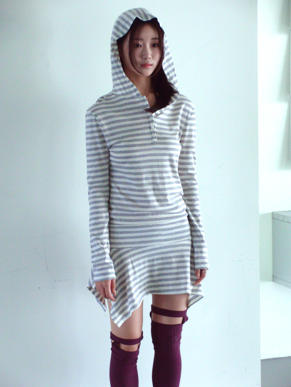 큰 후드와 함께 밑단 스커트의 독특한 패턴이 특징인 제품입니다.