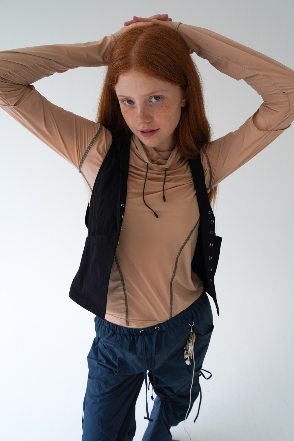 허리 스트랩 벨트가 사용되었으며, 후드와 후크 스냅으로 흔하지 않은 무드를 즐기실 수 있습니다.