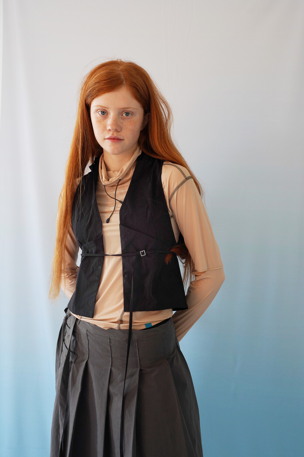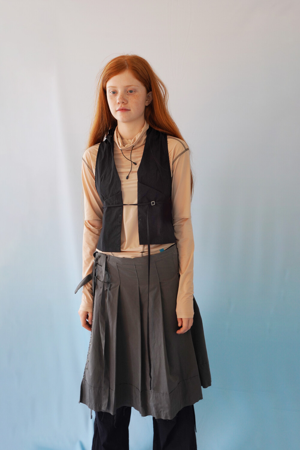 뒤집어서 후크 스냅을 보이게 착용하시거나 정방향으로 착용하여 허리 스트랩을 포인트로 착용하실 수 있는 리버서블 제품입니다.