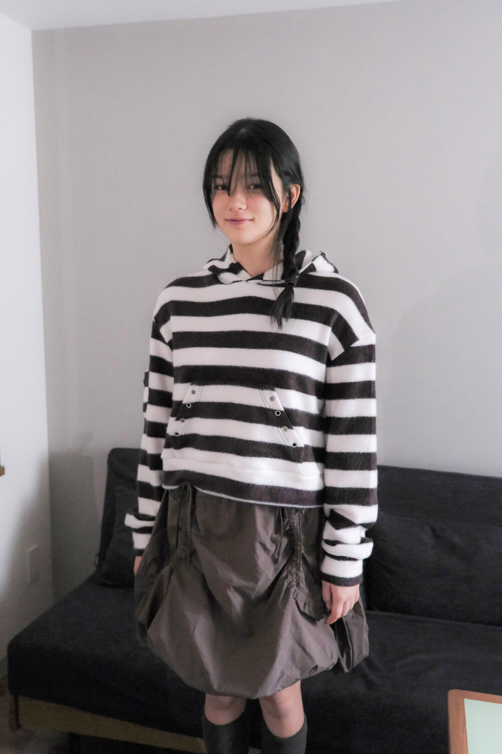 Brushed hoodie, stripe