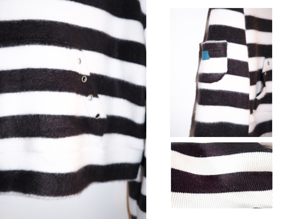 주머니의 아일렛과 팔 부분에는 라벨이 부착된 미니 포켓이 있습니다. 우측하단 사진은 원단의 안쪽면입니다.