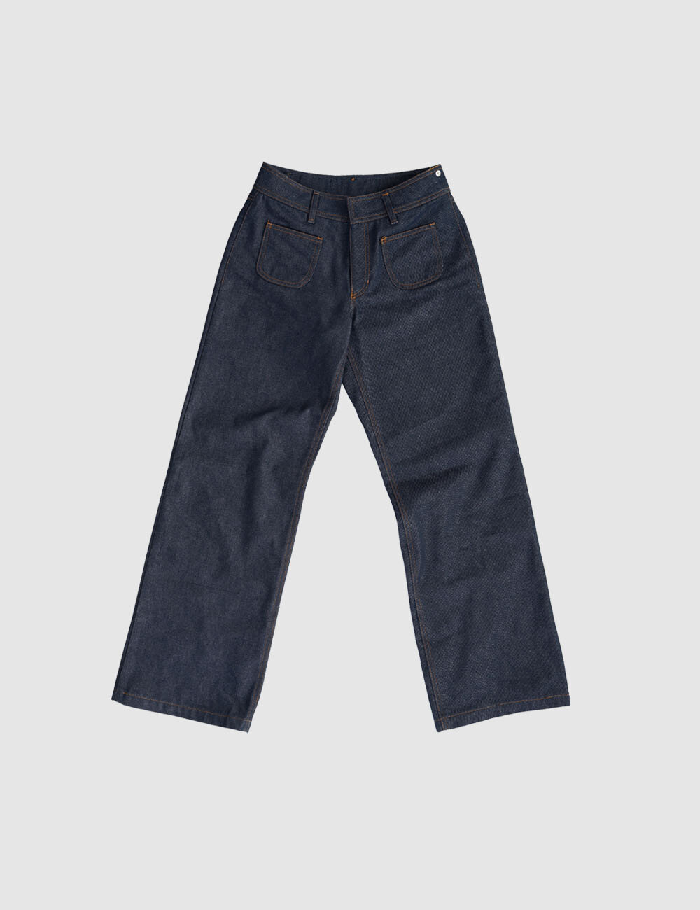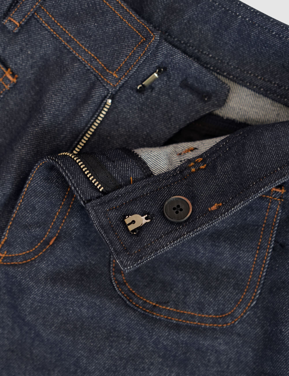 두께감 있는 생지 데님으로 초반 착용시 빳빳한 인상을 주지만,