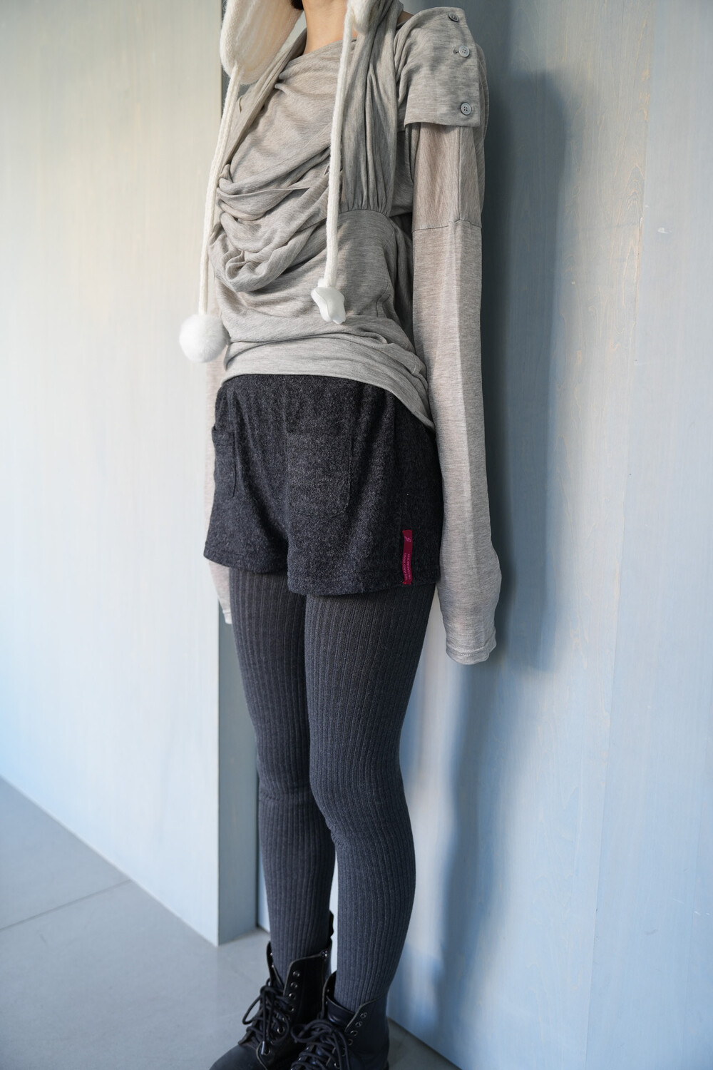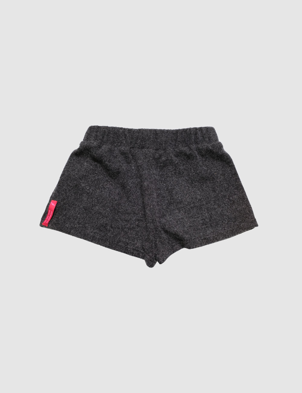 길이감이 짧은 니트 소재의 쇼츠로, 짧은 기장의 원피스나