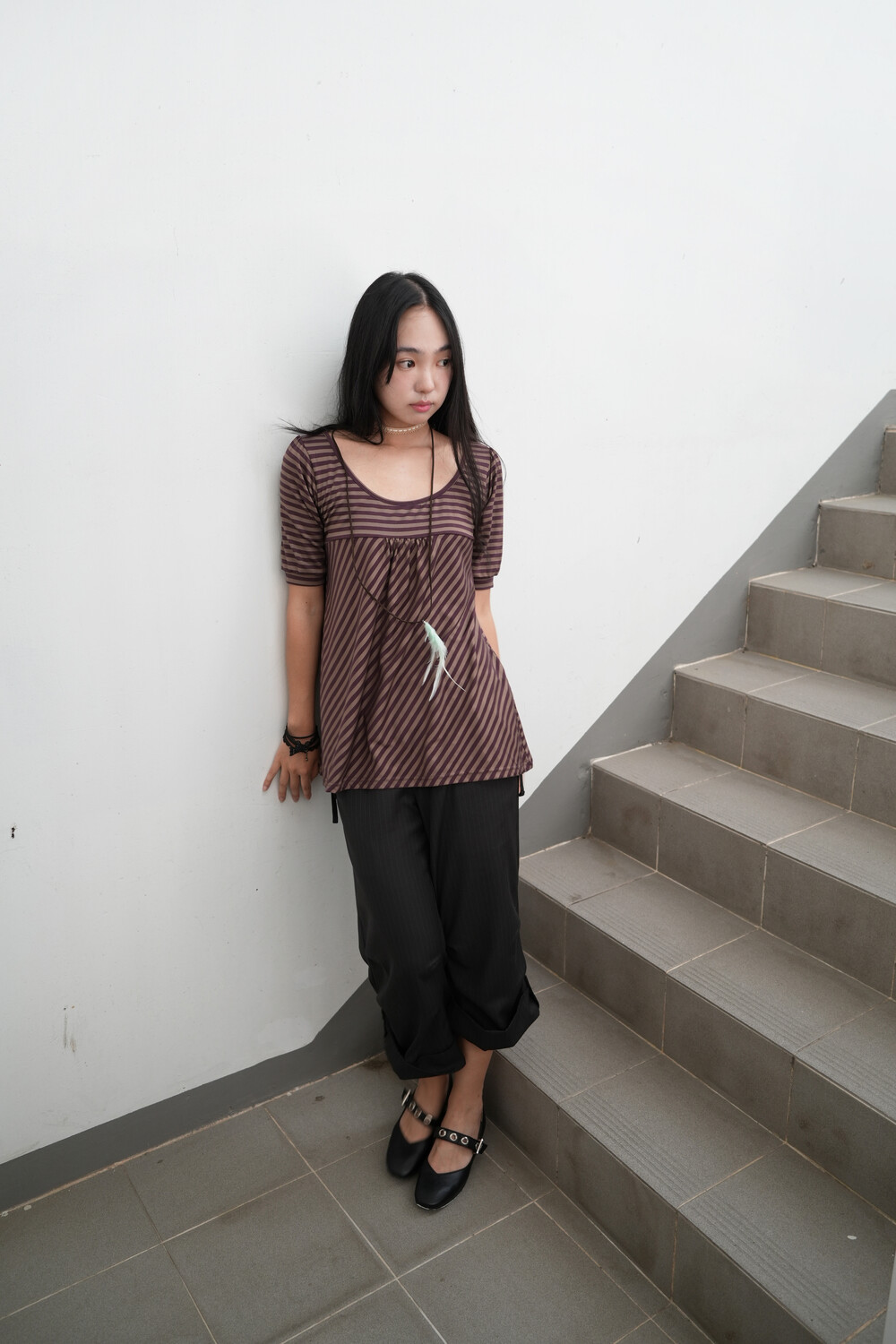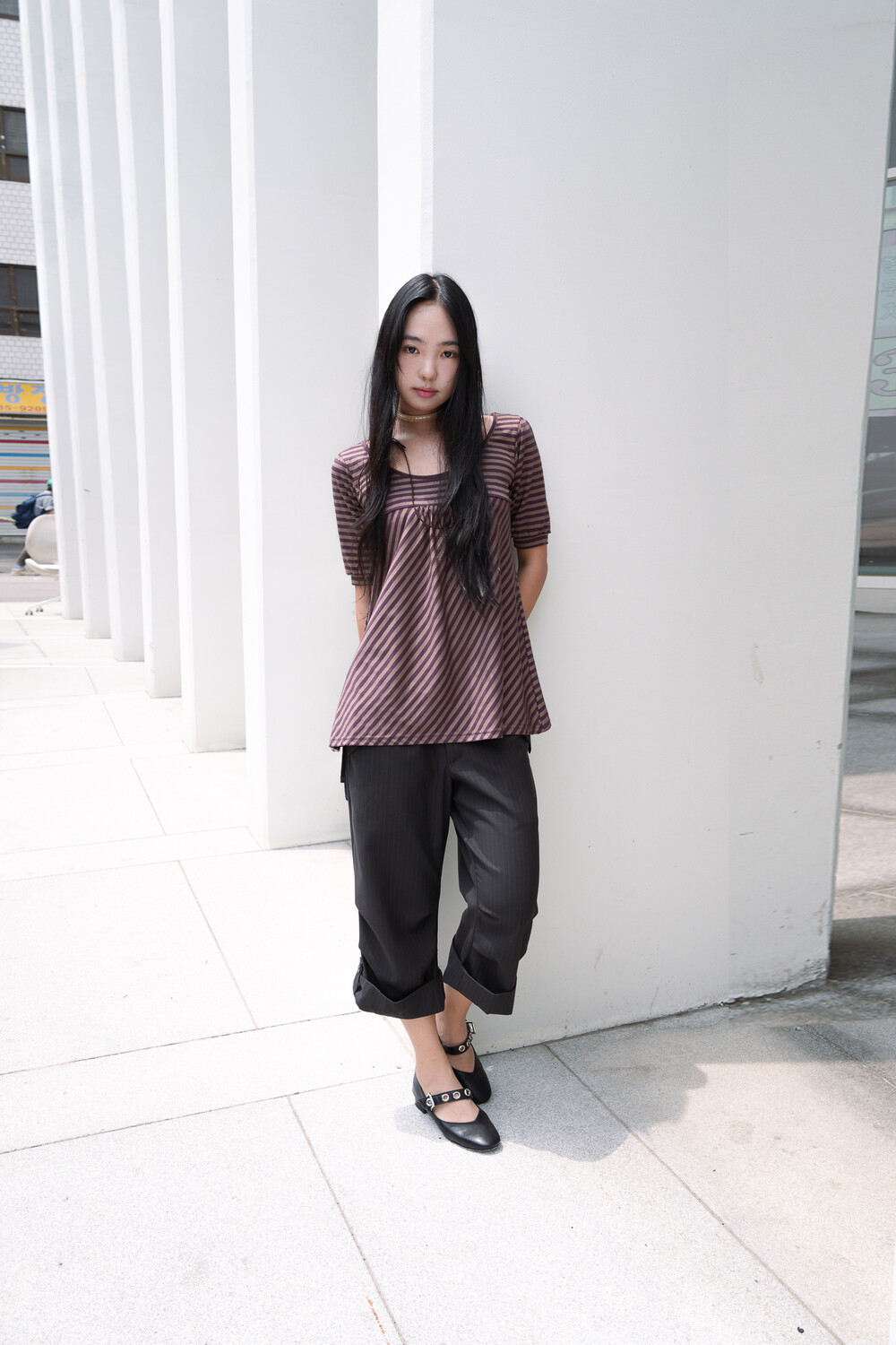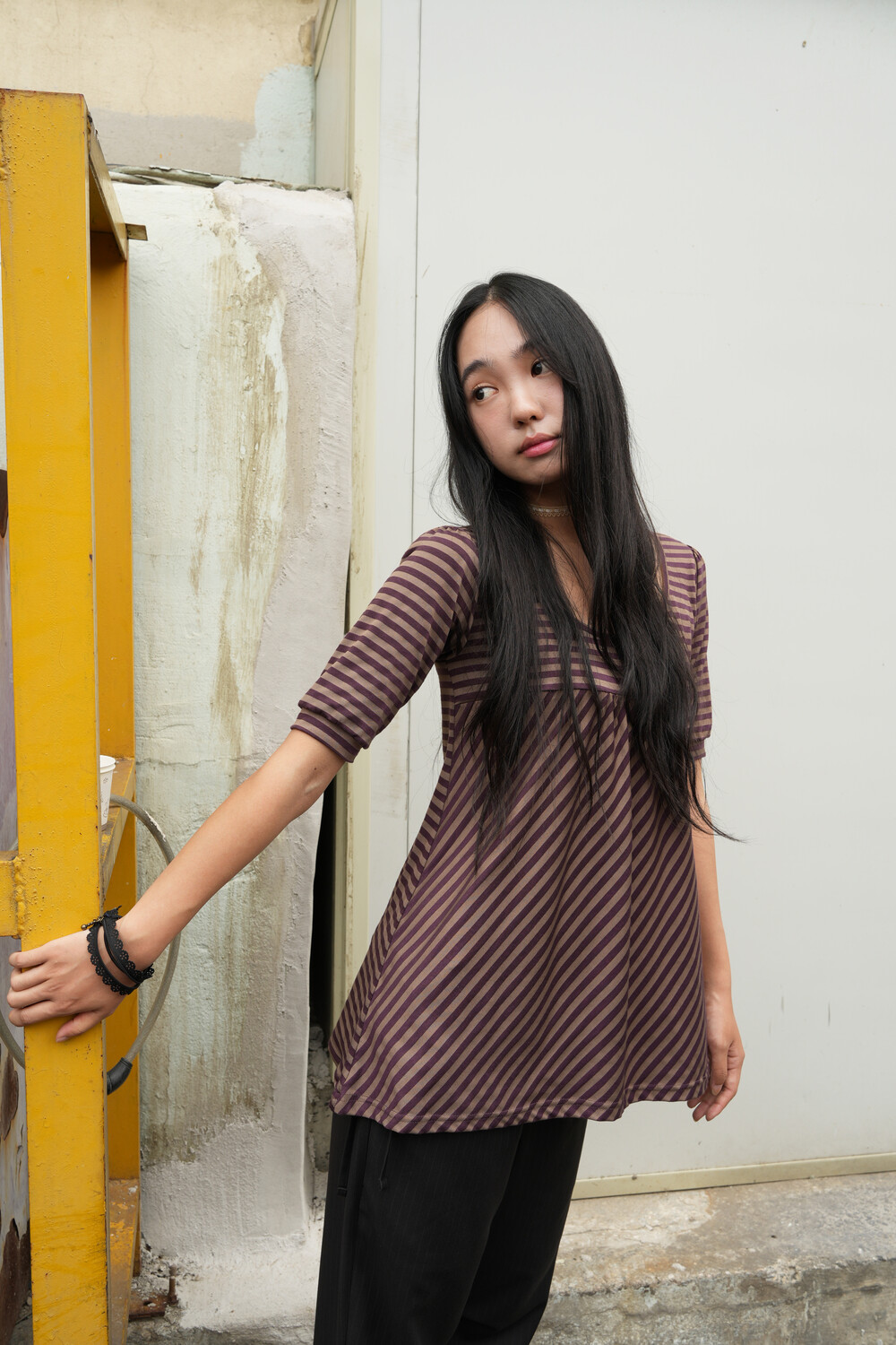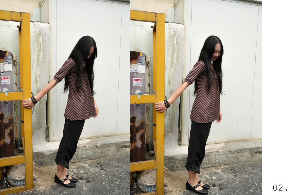 전면 몸통 부분은 스트라이프 패턴을 사선으로 배치하여 제작하였습니다.