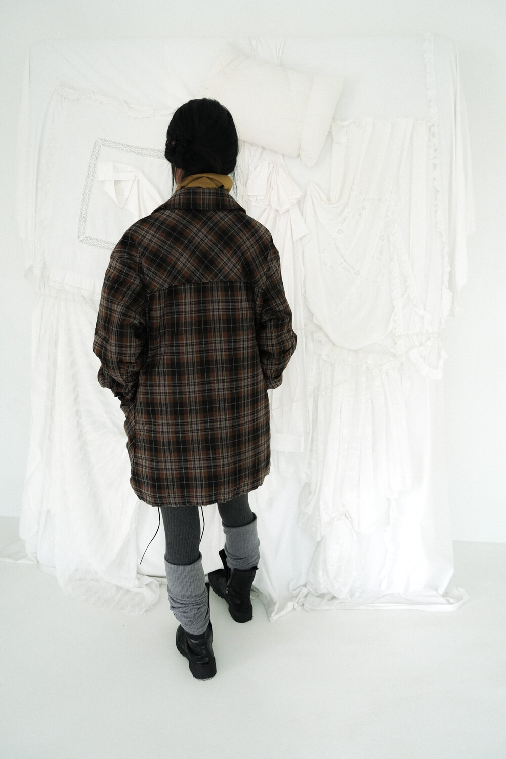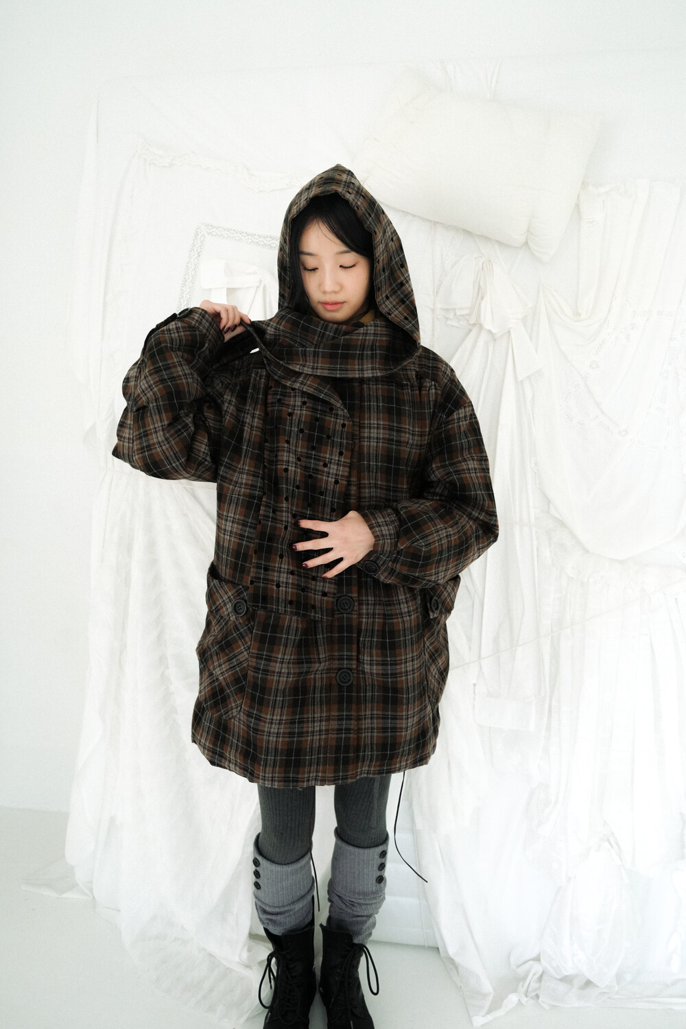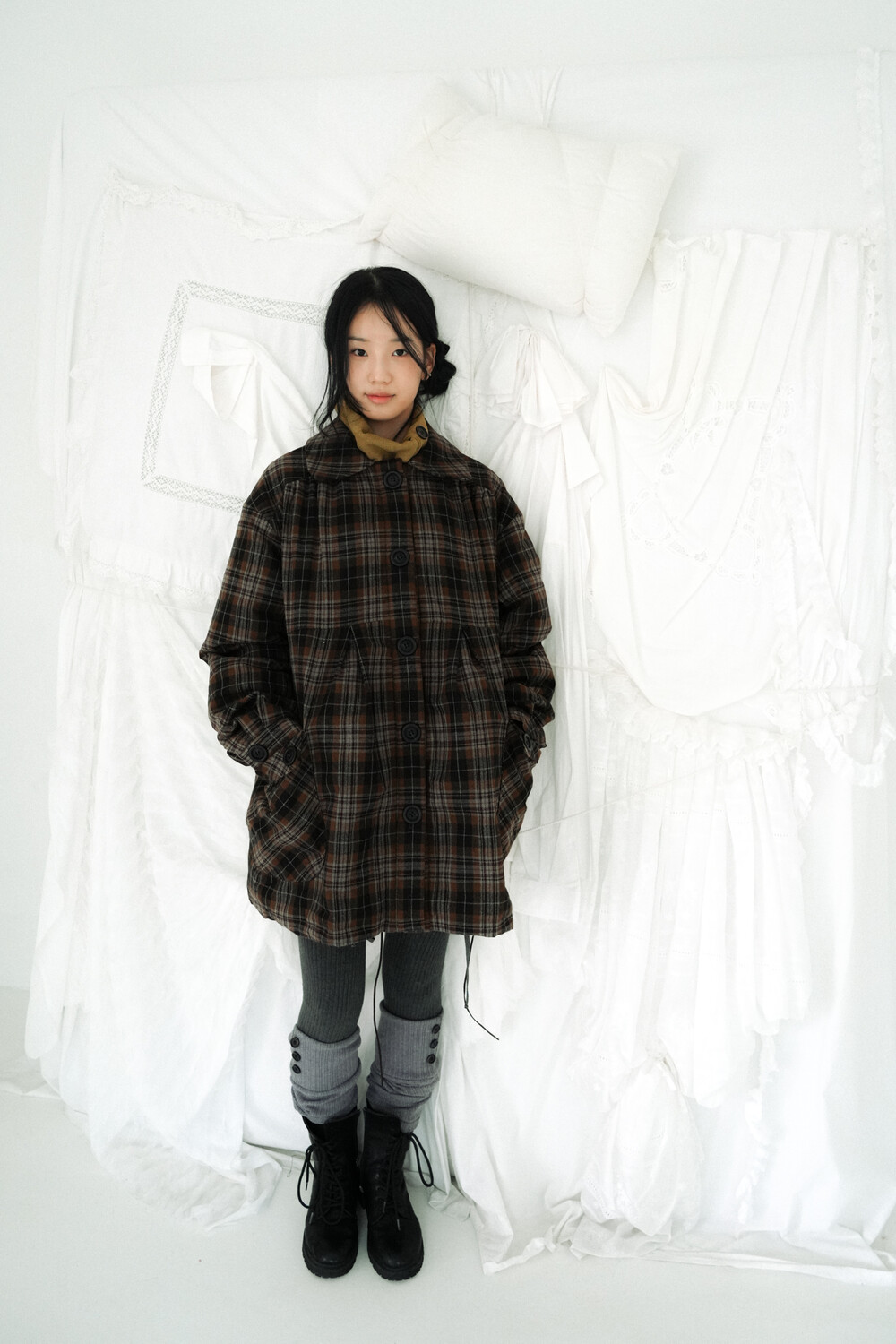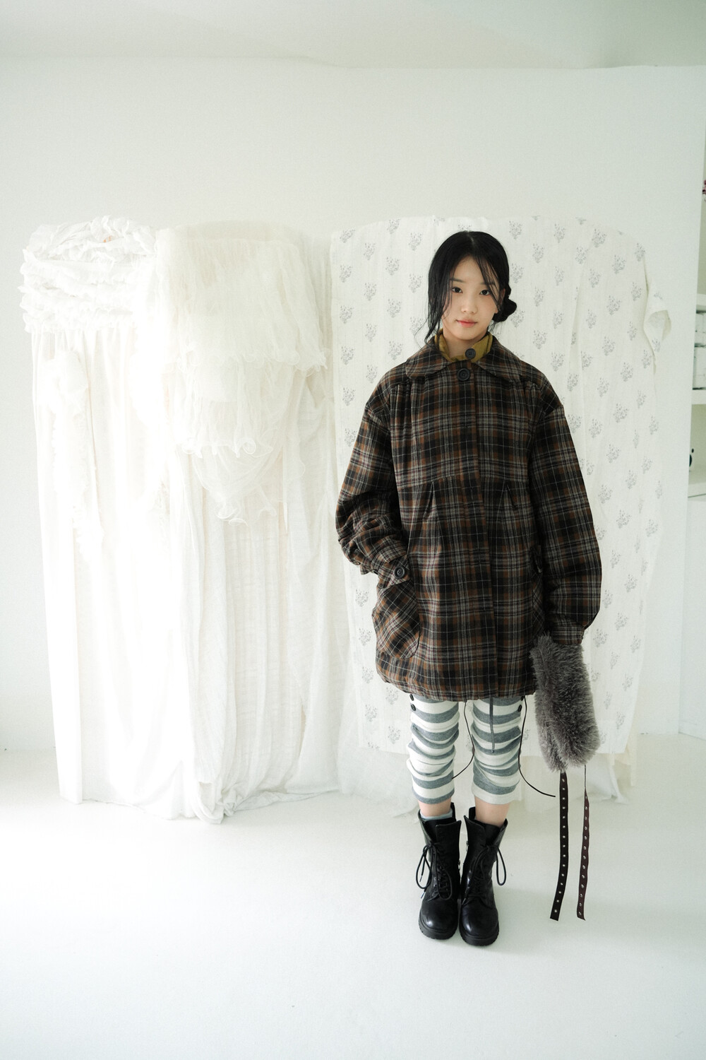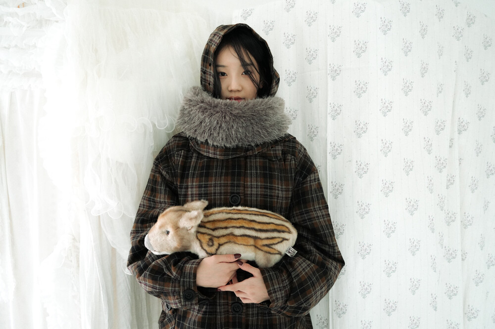 전면의 큰 포켓과 둥근 카라로 사랑스러운 느낌을 주는 퀼티드 코트입니다. 안감에 누빔이 적용되어 한겨울 착용이 가능합니다. 함께 제작된 리버시블 후드 머플러는 분리가 가능하기 때문에 사용자의 의도에 따라 다양한 연출로 제품을 착용하실 수 있습니다.
