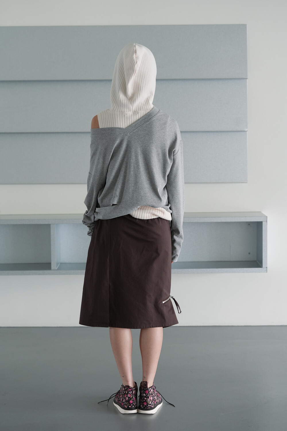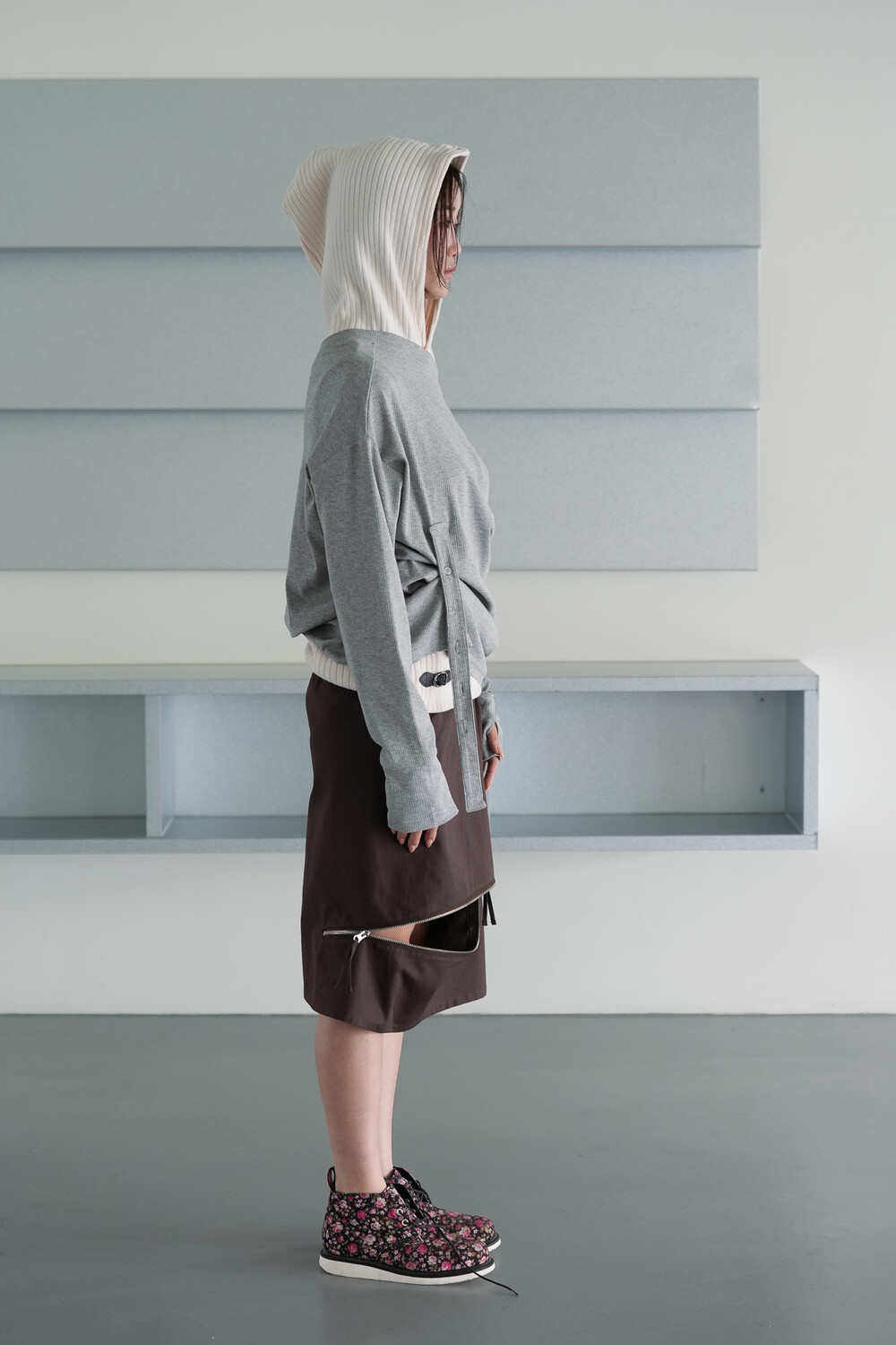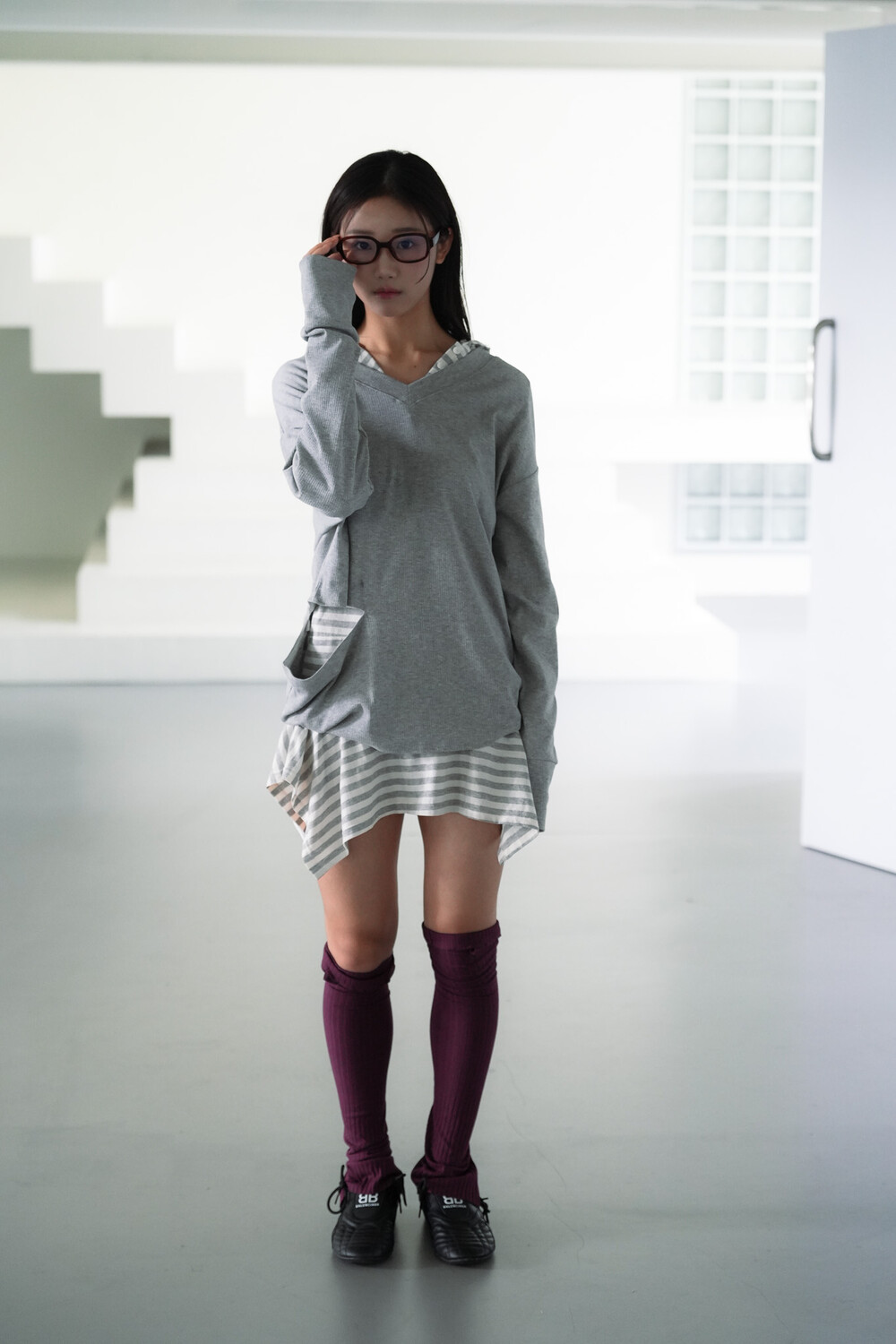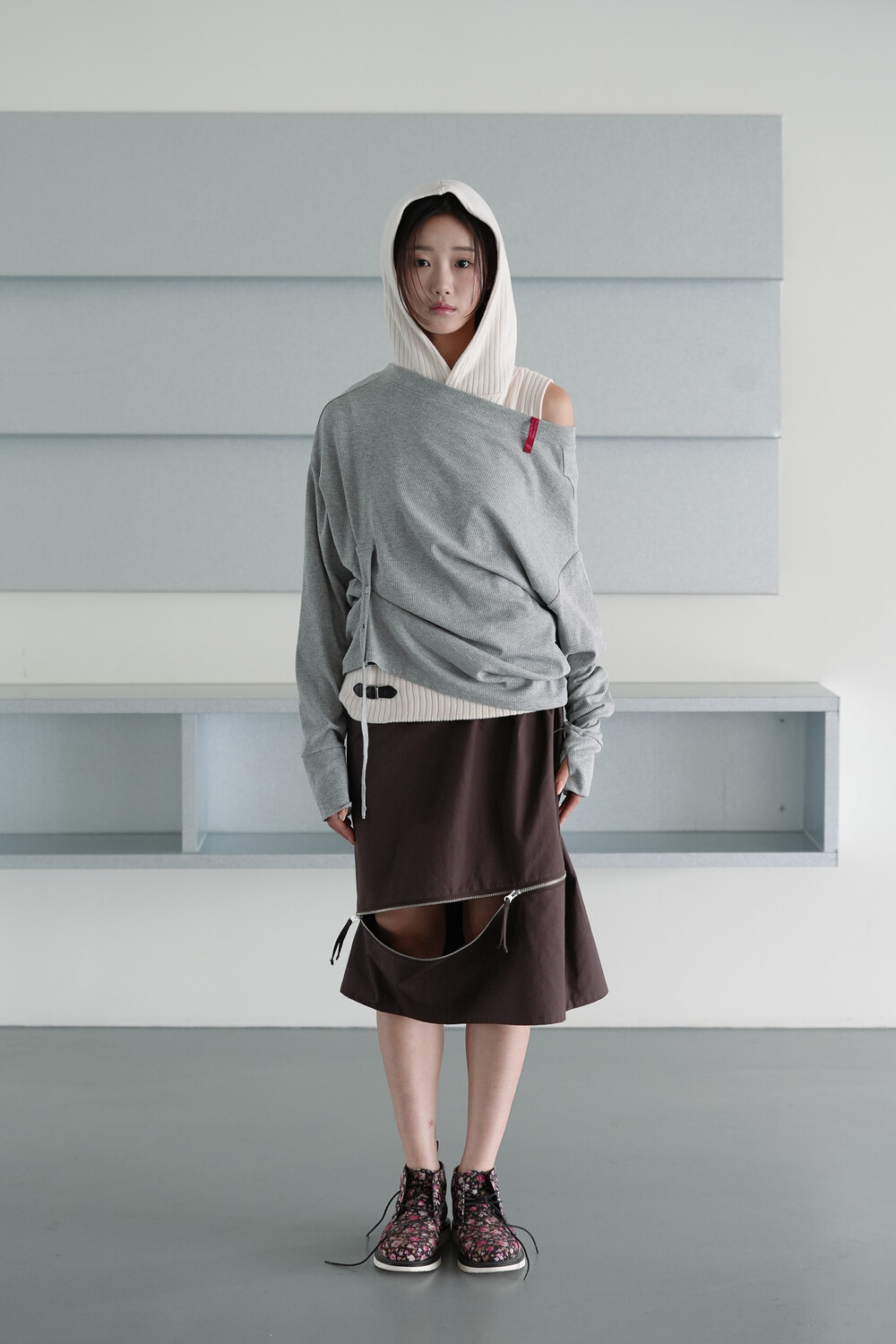 제작되었으며, 박시한 핏으로 착용되지만 컷아웃 디테일이 있어