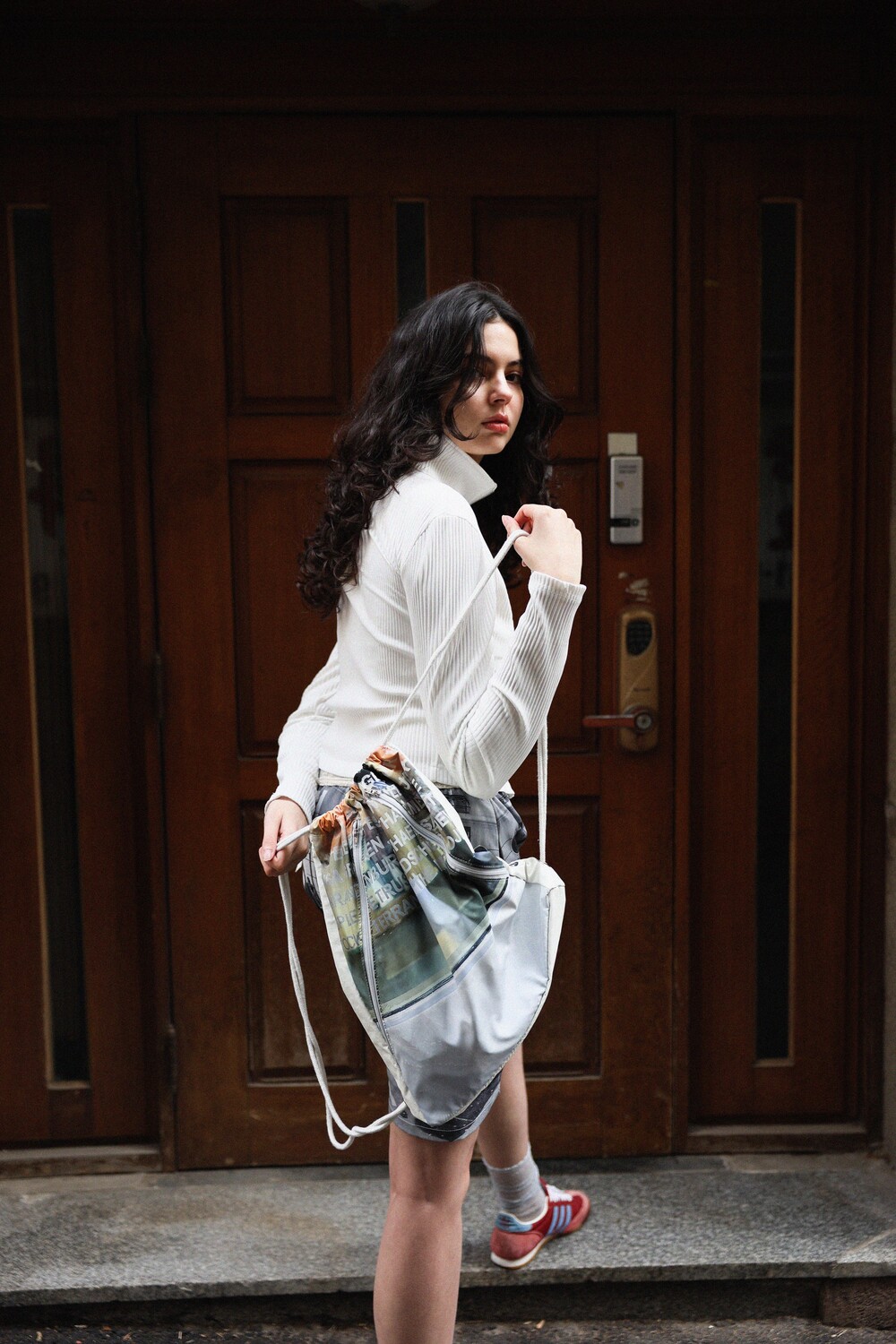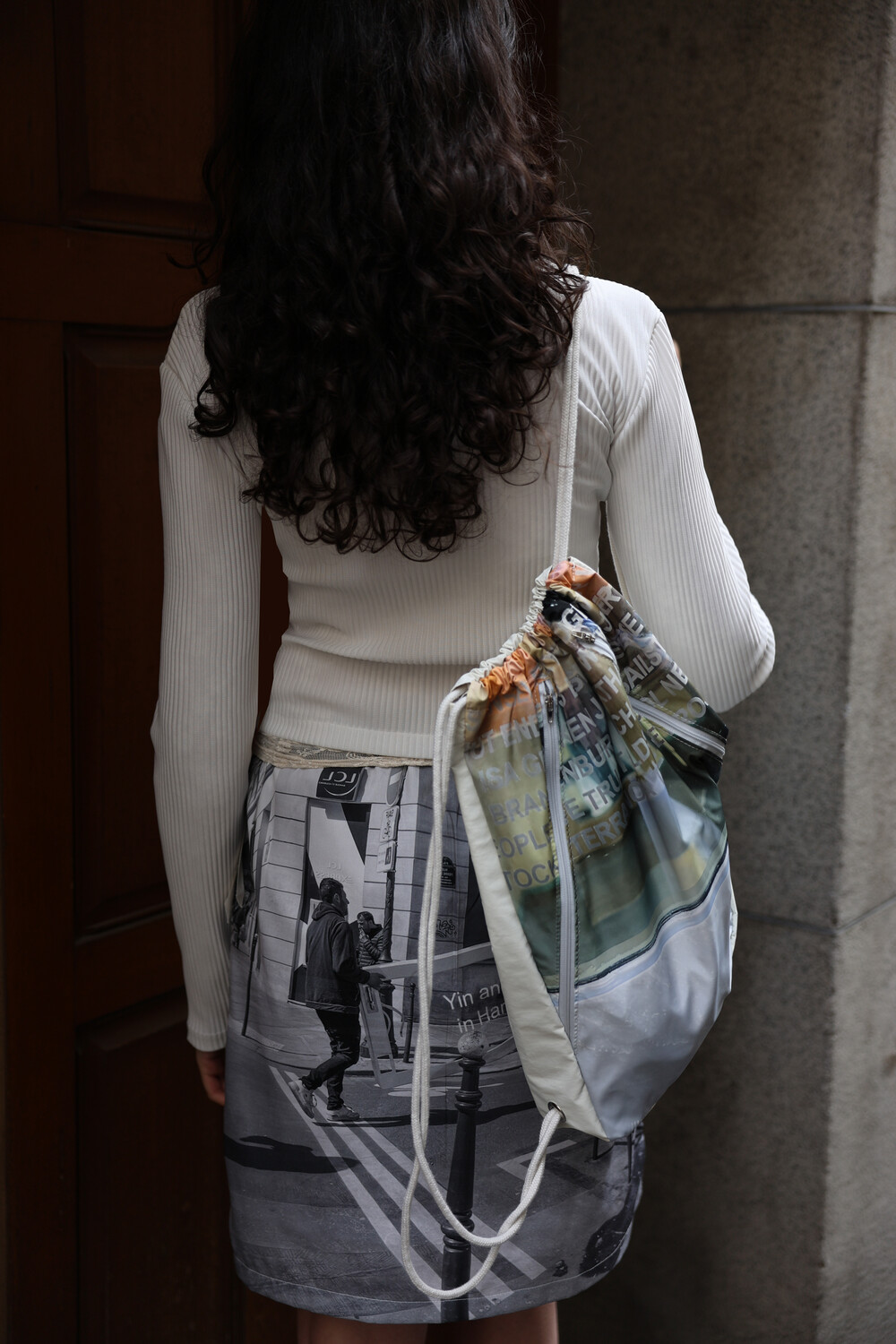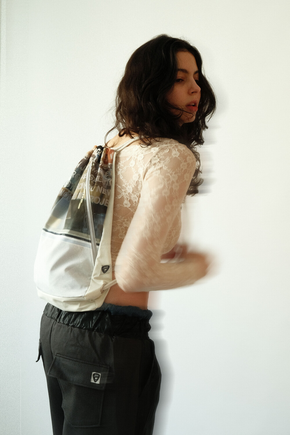 앞면은 프린팅, 뒷면은 아이보리 컬러의 원단이 사용됐습니다.