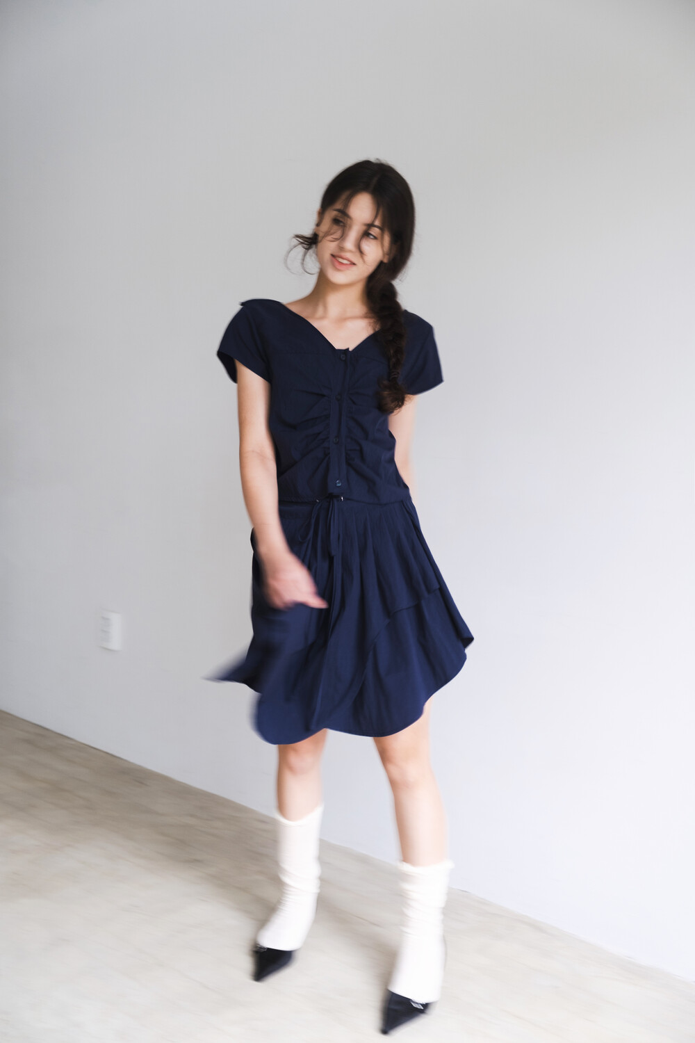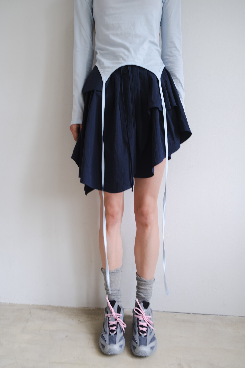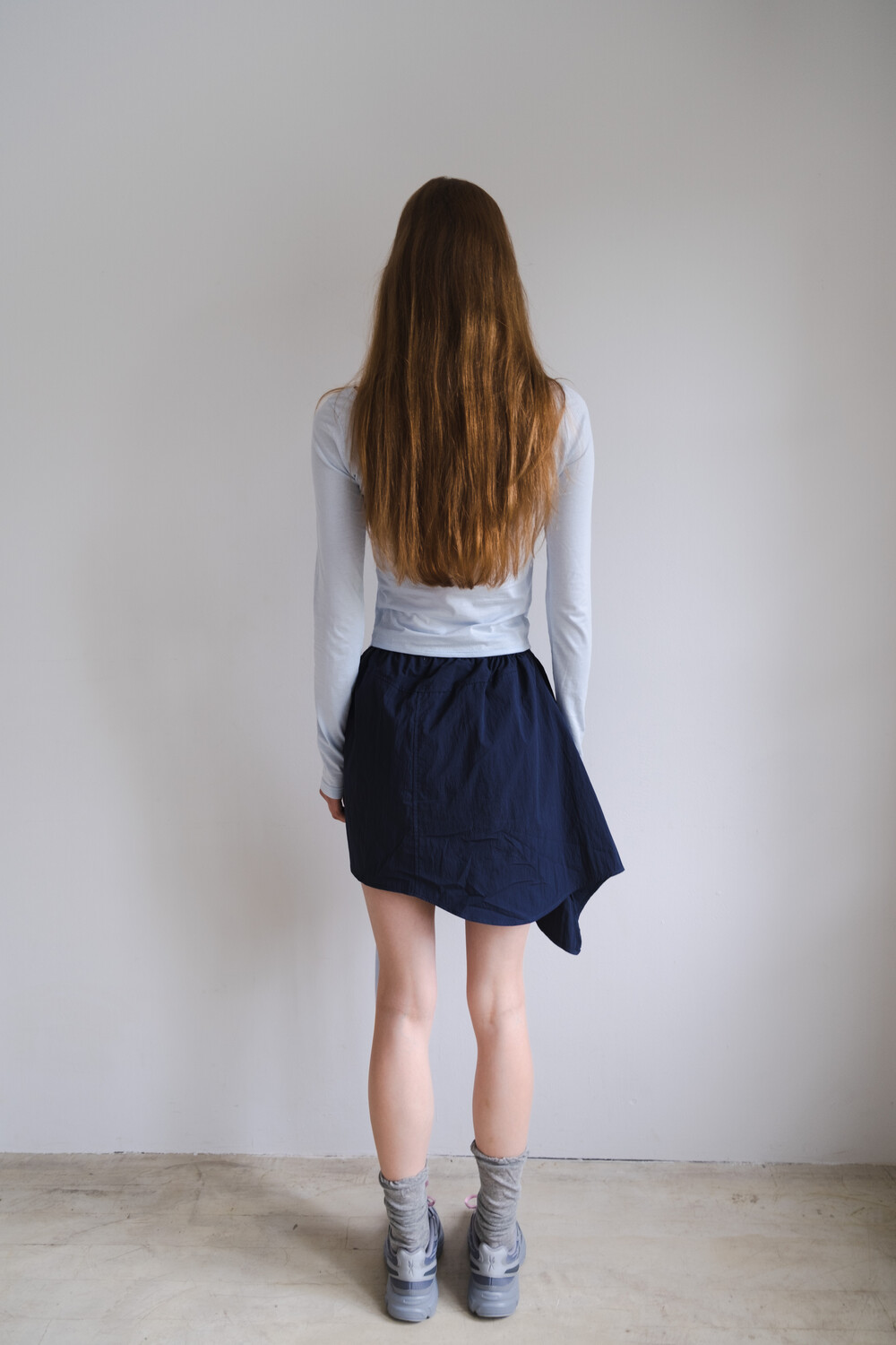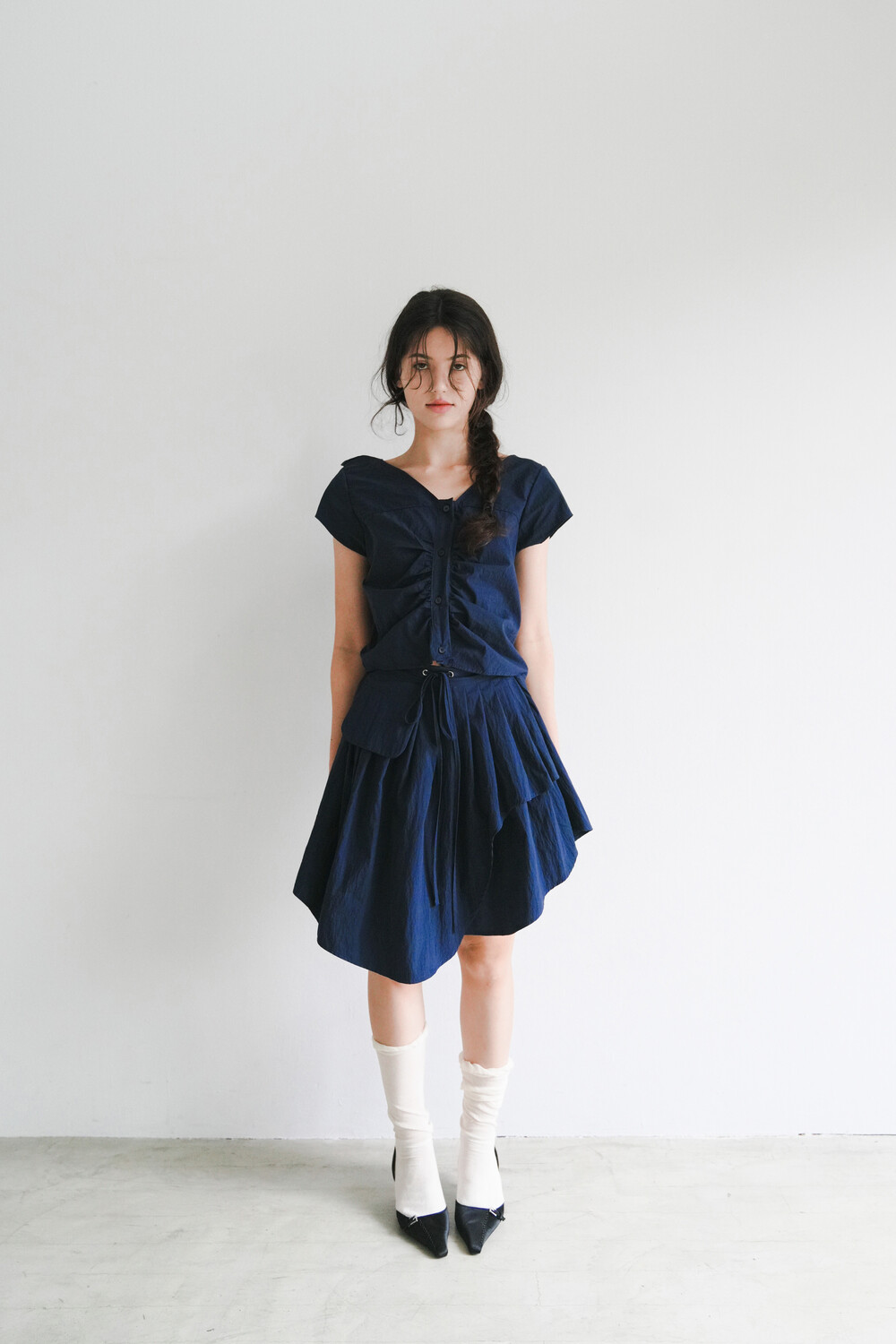 몸을 따라 흐르는 주름과 아웃포켓 디테일이 특징인 스커트입니다. 단독으로도 포인트 아이템이 되어주며,