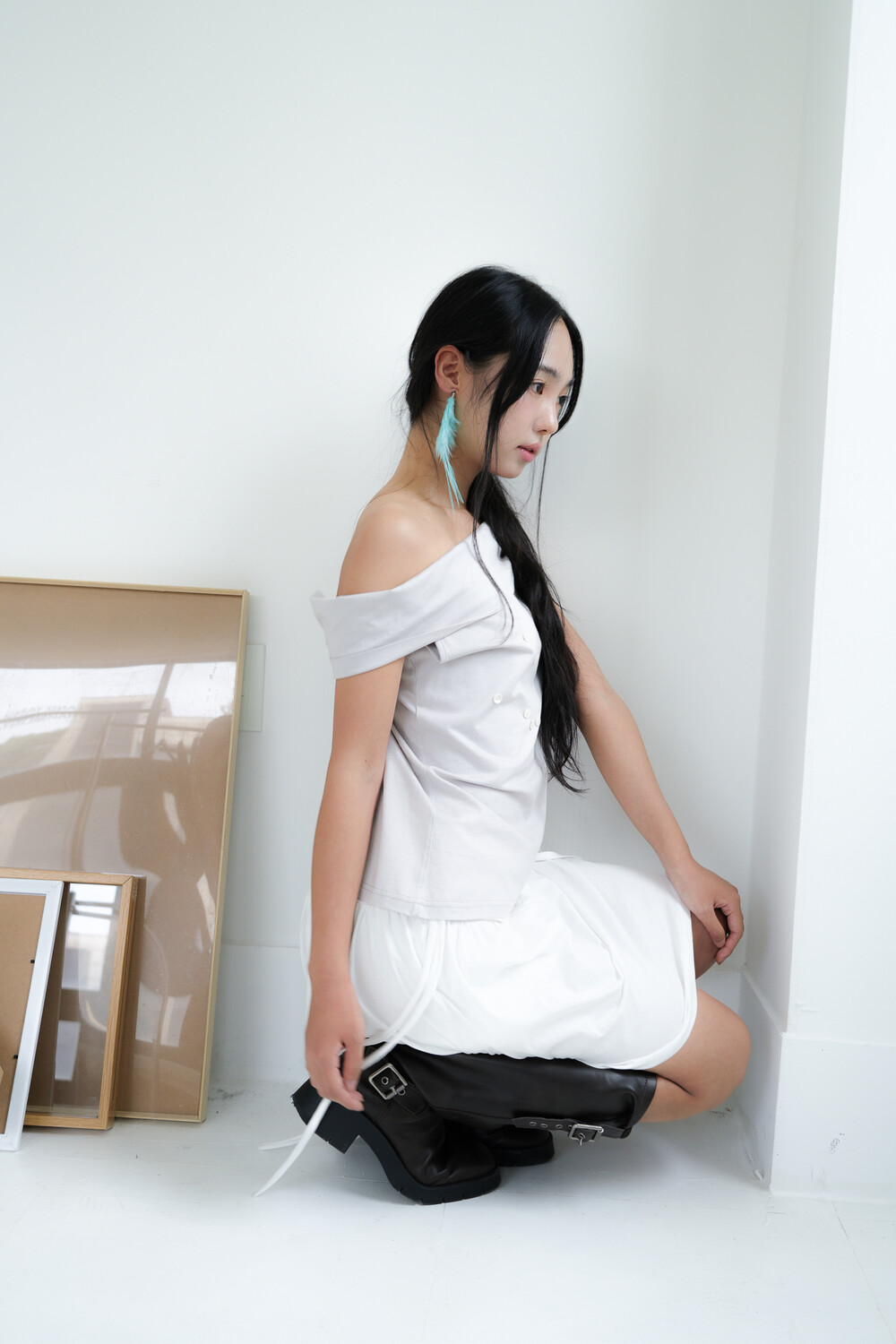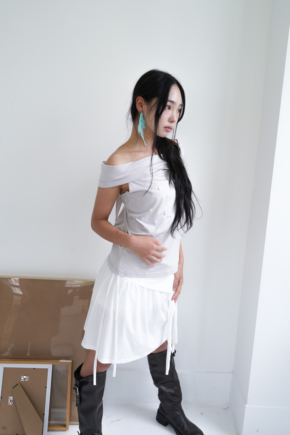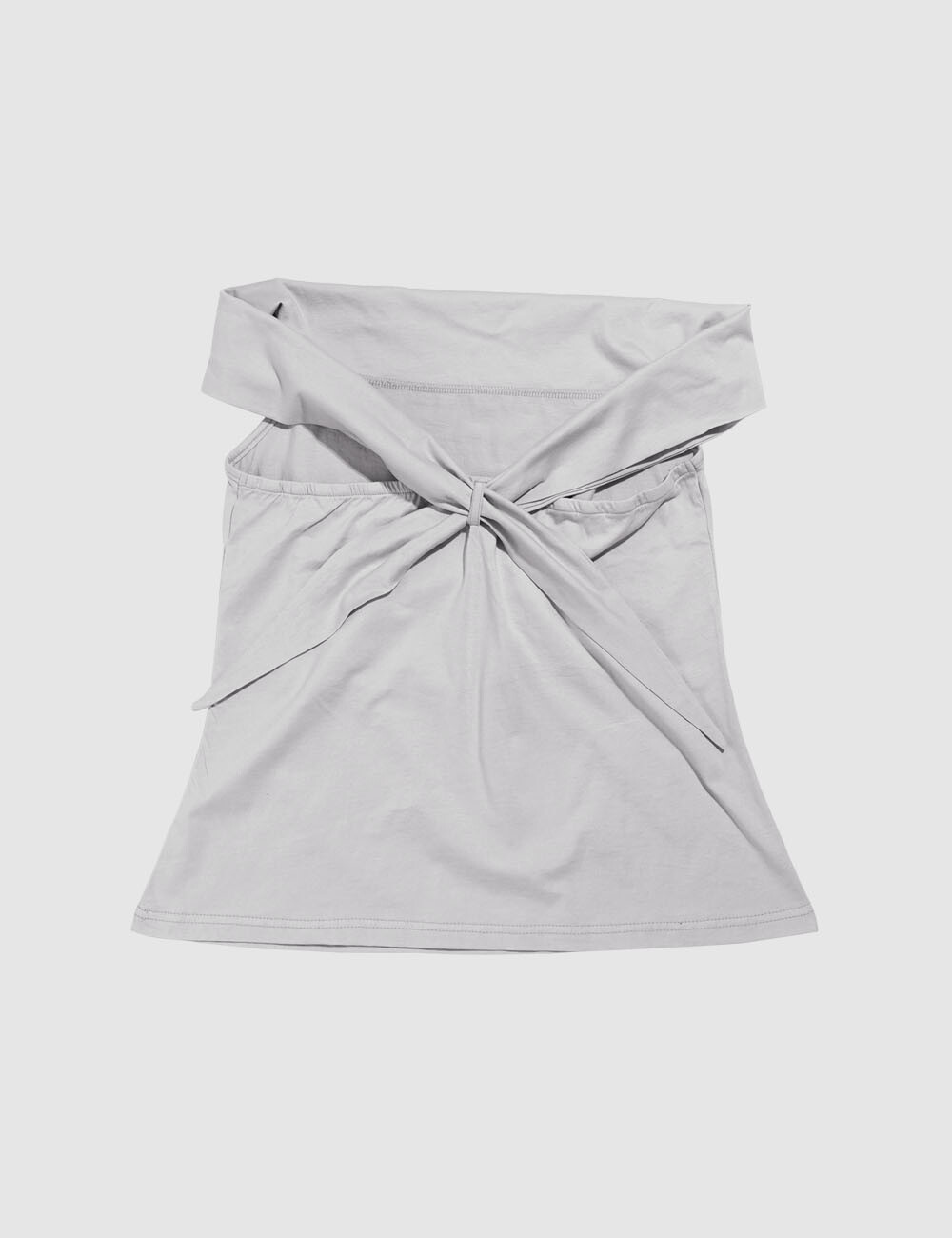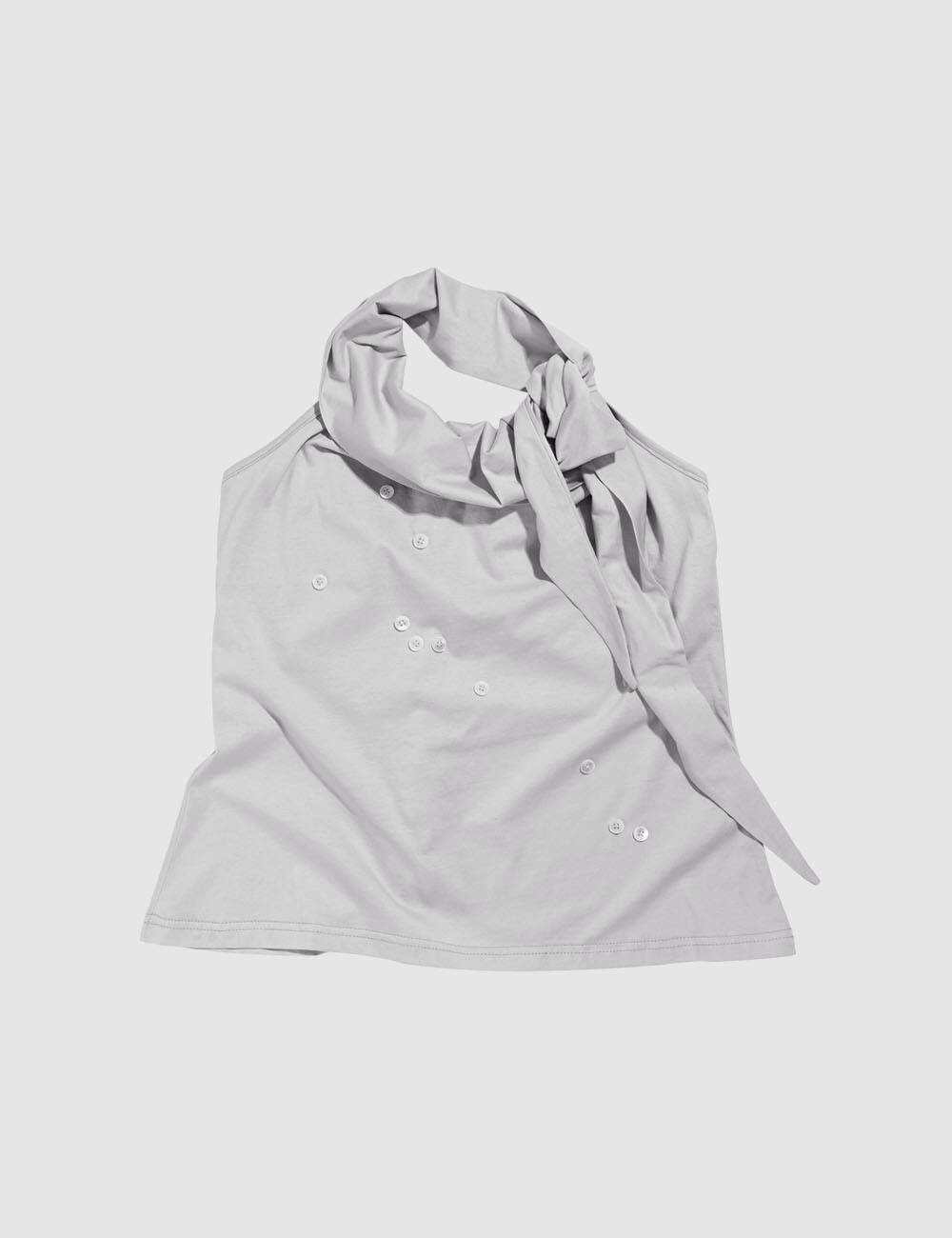 사용자의 의도에 따라 오프숄더, 홀터넥 등 다양한 형태로 연출이 가능한 탑입니다.