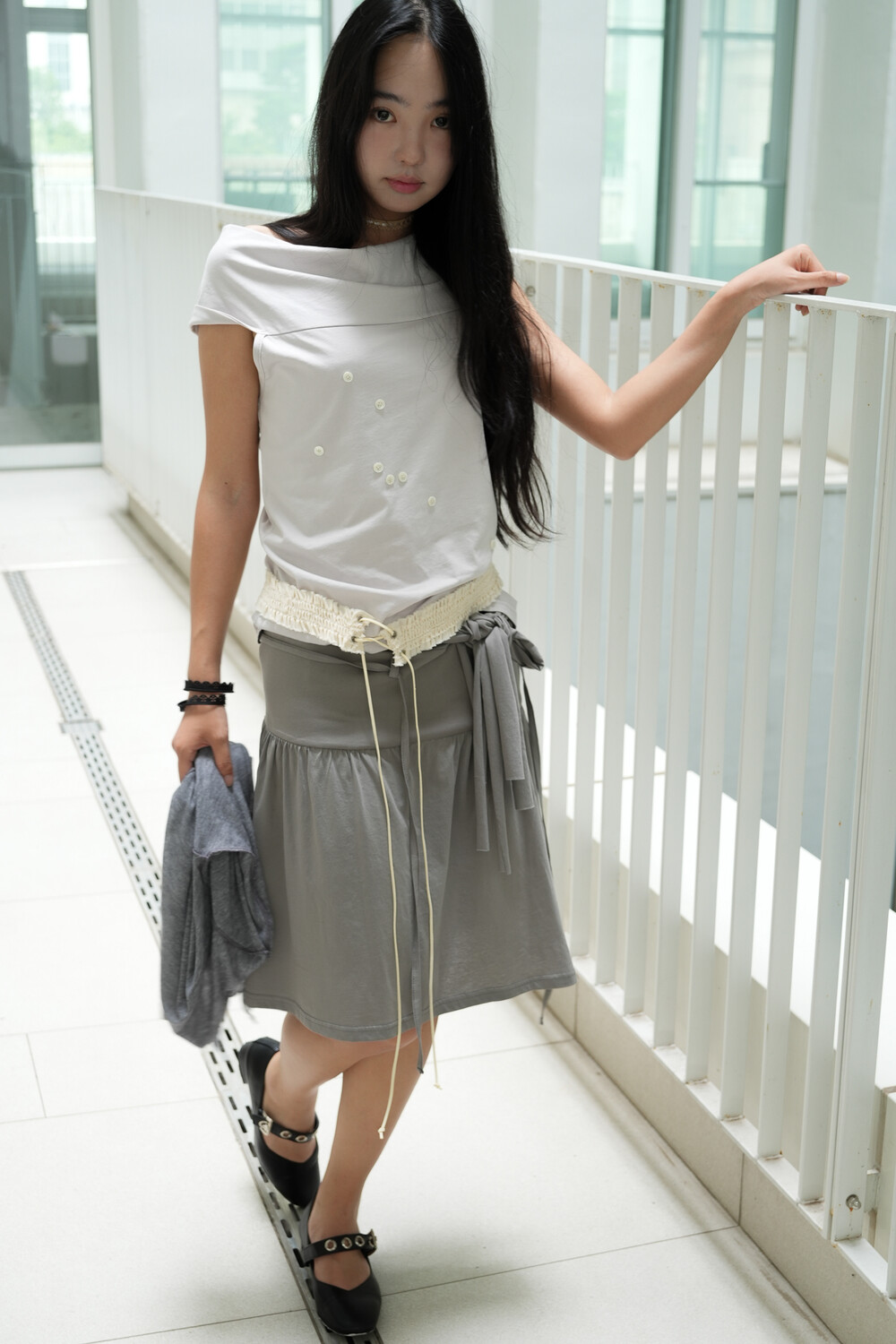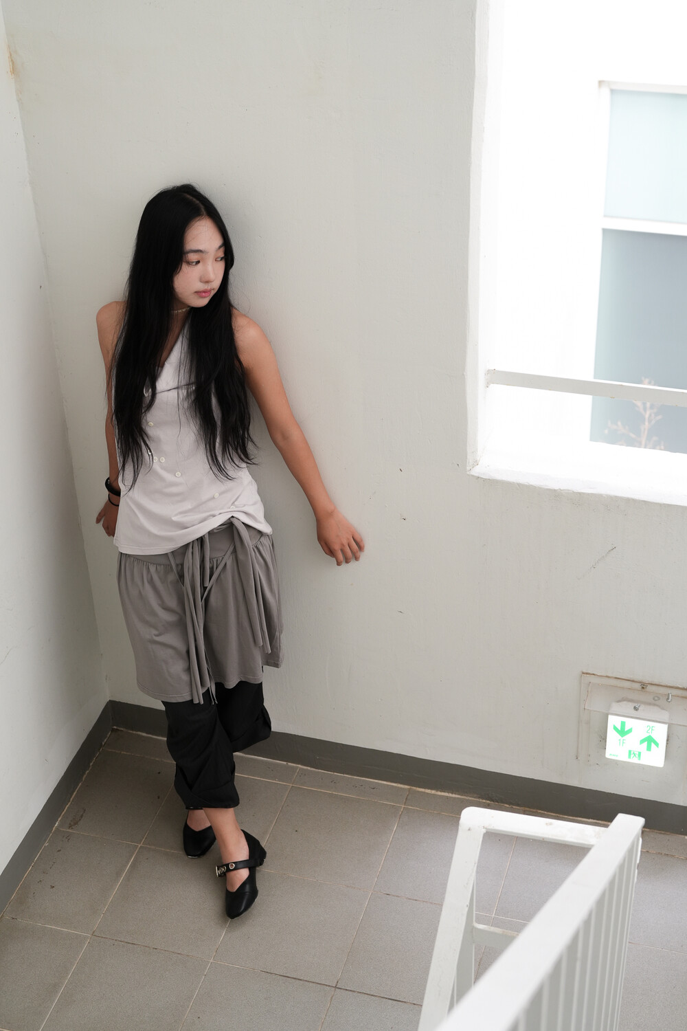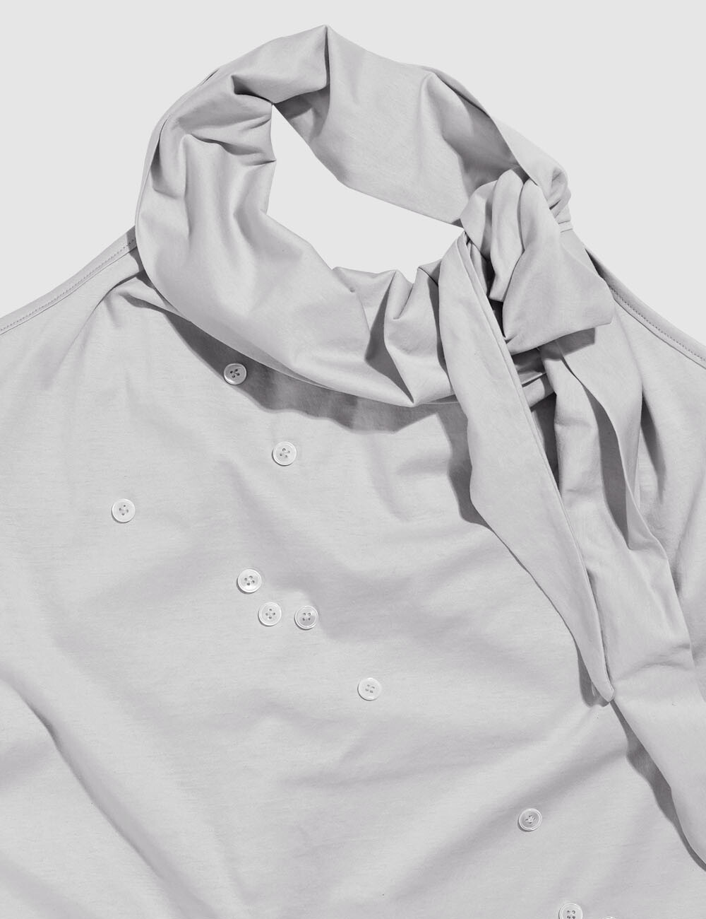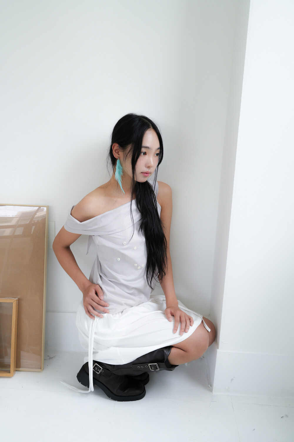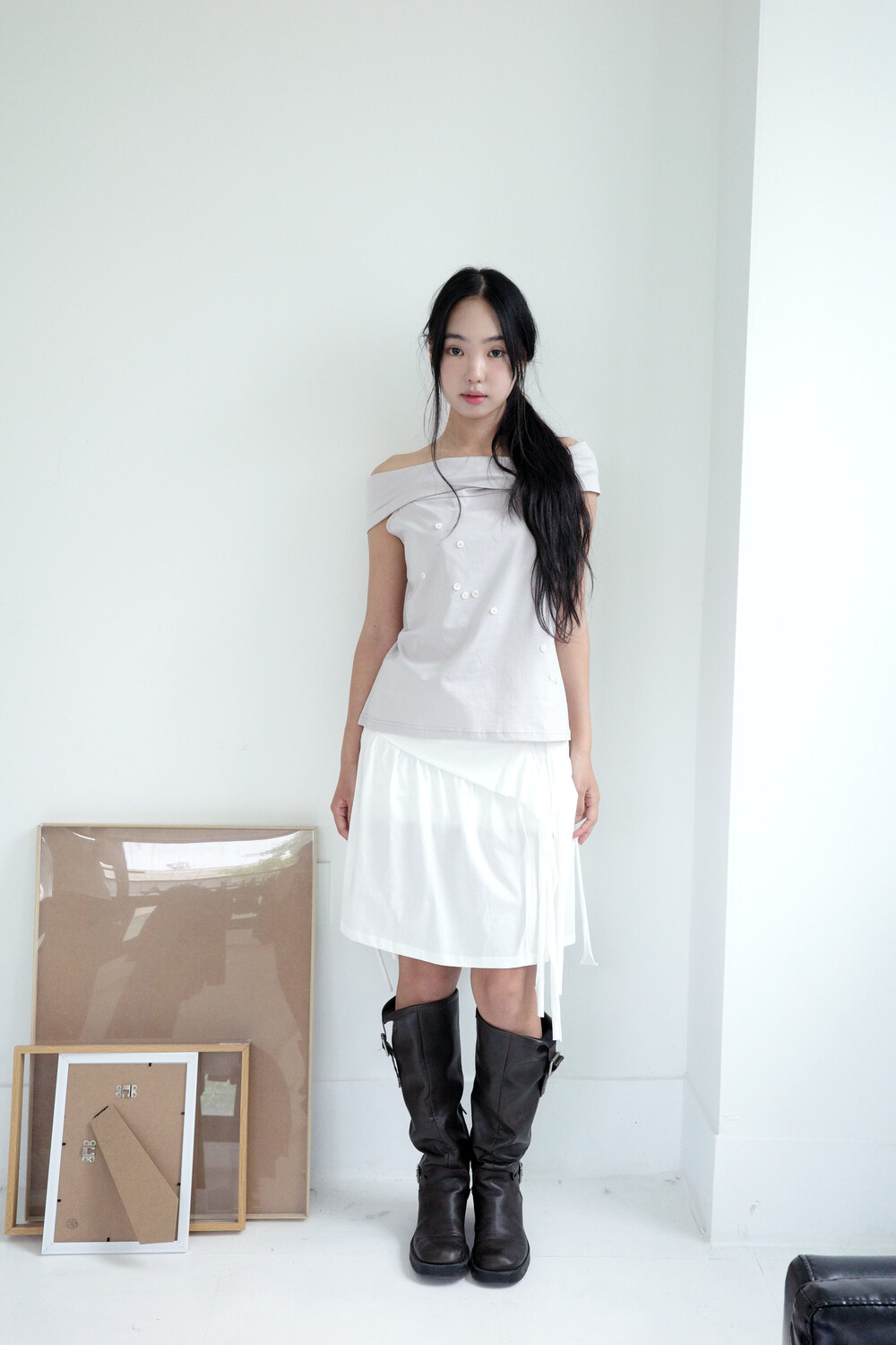 사용자의 의도에 따라 오프숄더, 홀터넥 등 다양한 형태로 연출이 가능한 탑입니다.
