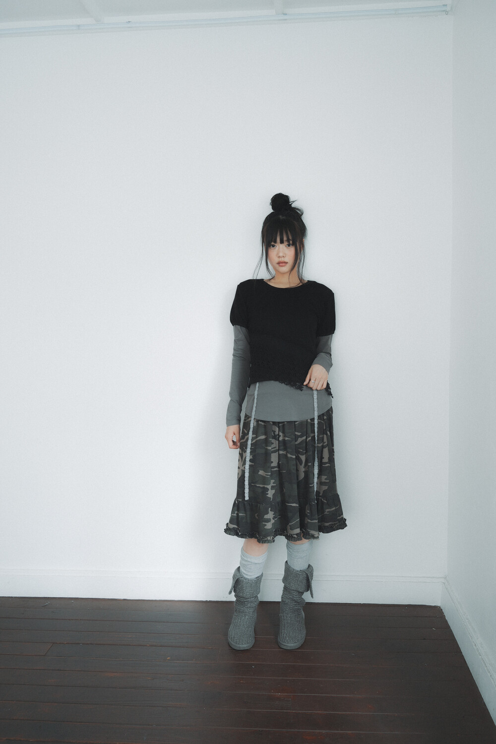 허리 부분이 스모크 밴딩 처리되어 체형에 구애없이 착용가능한 스커트입니다. 밑단에는 프릴을 더해 풍성함을 더했습니다. 다양한 레이어드를 통해 착용해보세요.