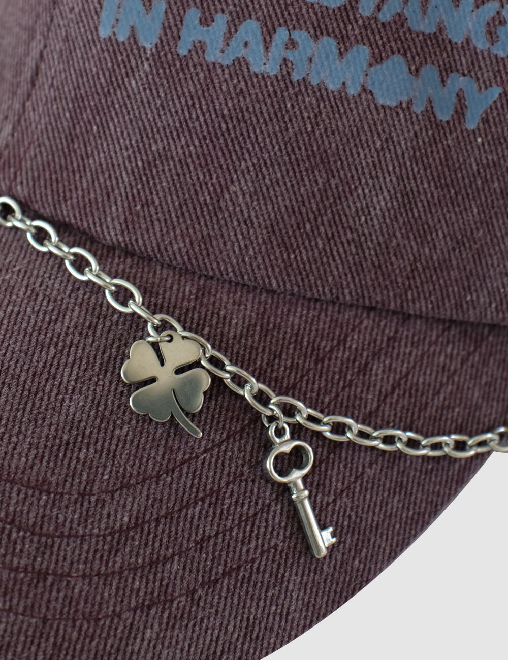 모자의 펜던트 체인은 양 옆의 고리에 탈부착이 가능합니다.